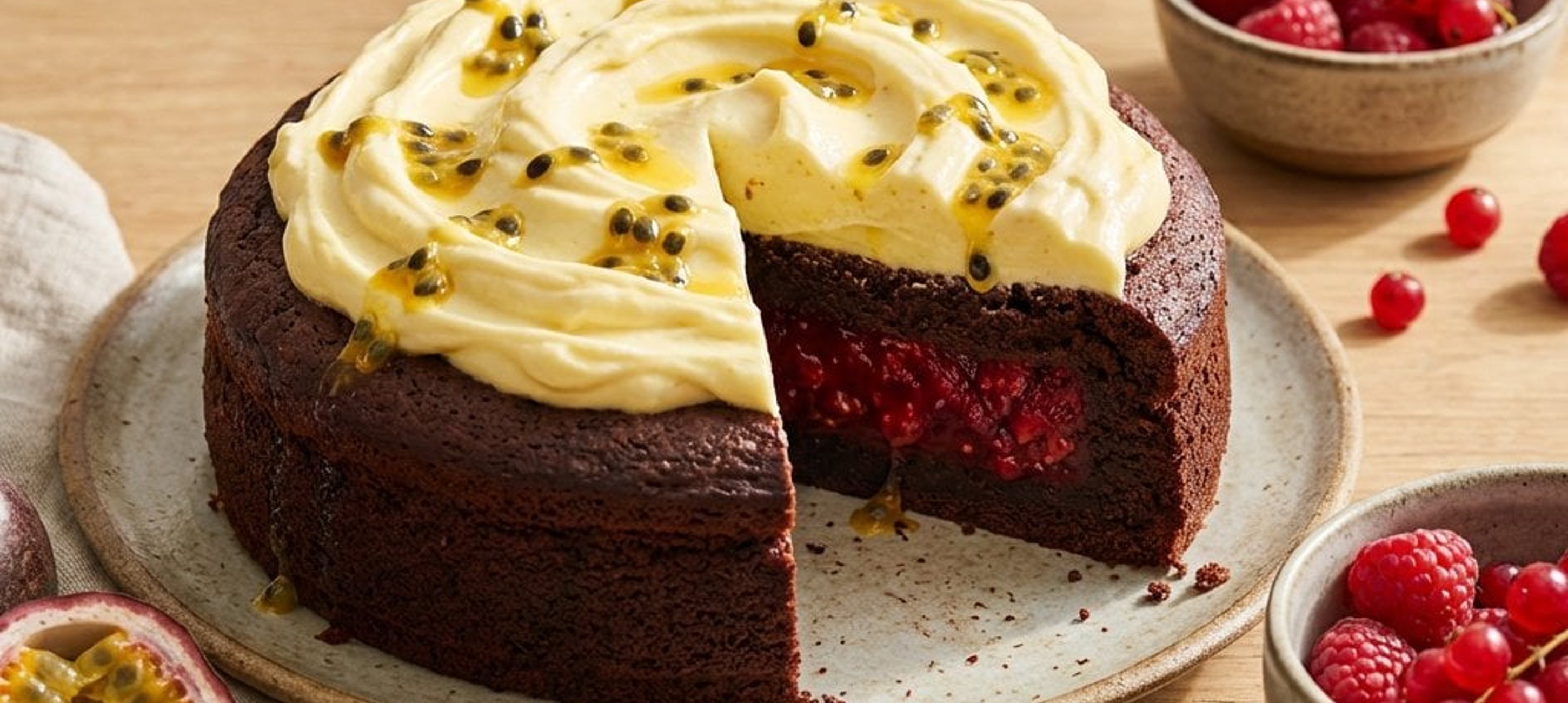 Tipp: A maracuja magjait ne dobja ki, kiválóan alkalmasak a torta tetejének díszítésére és extra textúrát adnak a desszertnek.