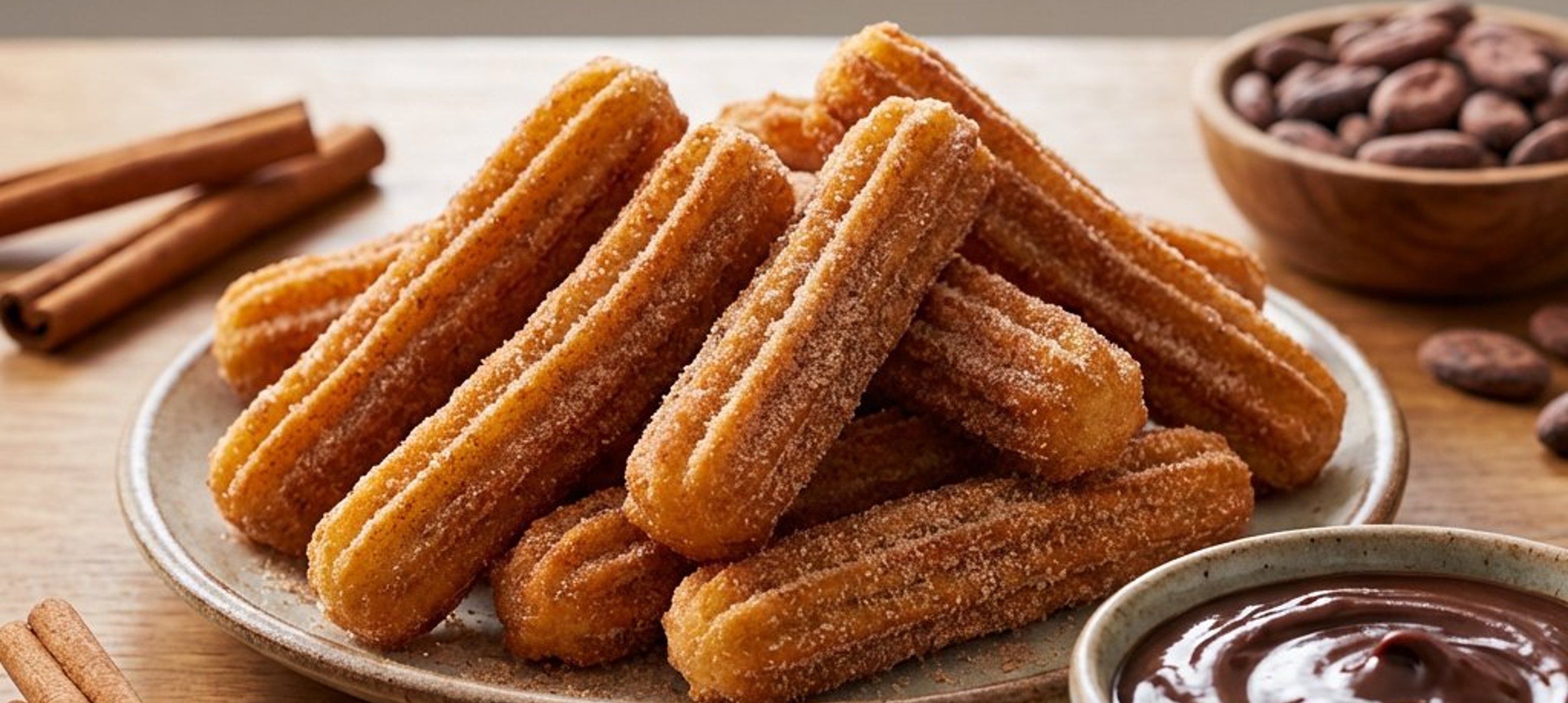 - 5Süsd a churrosokat 2-3 percig, vagy amíg aranybarnák és ropogósak nem lesznek, közben néha forgasd meg őket. Szedd papírtörlőre, hogy a felesleges olaj lecsöpögjön, majd még melegen forgasd meg a fahéjas cukorban. Tálald forrón a csokoládéöntettel.
