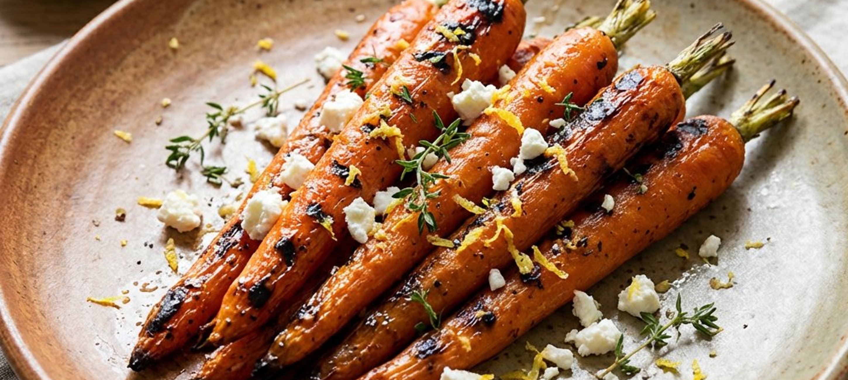 A grillezett sárgarépa kiváló köret sültek mellé, de önmagában is megállja a helyét egy kis extra feta sajttal megszórva.