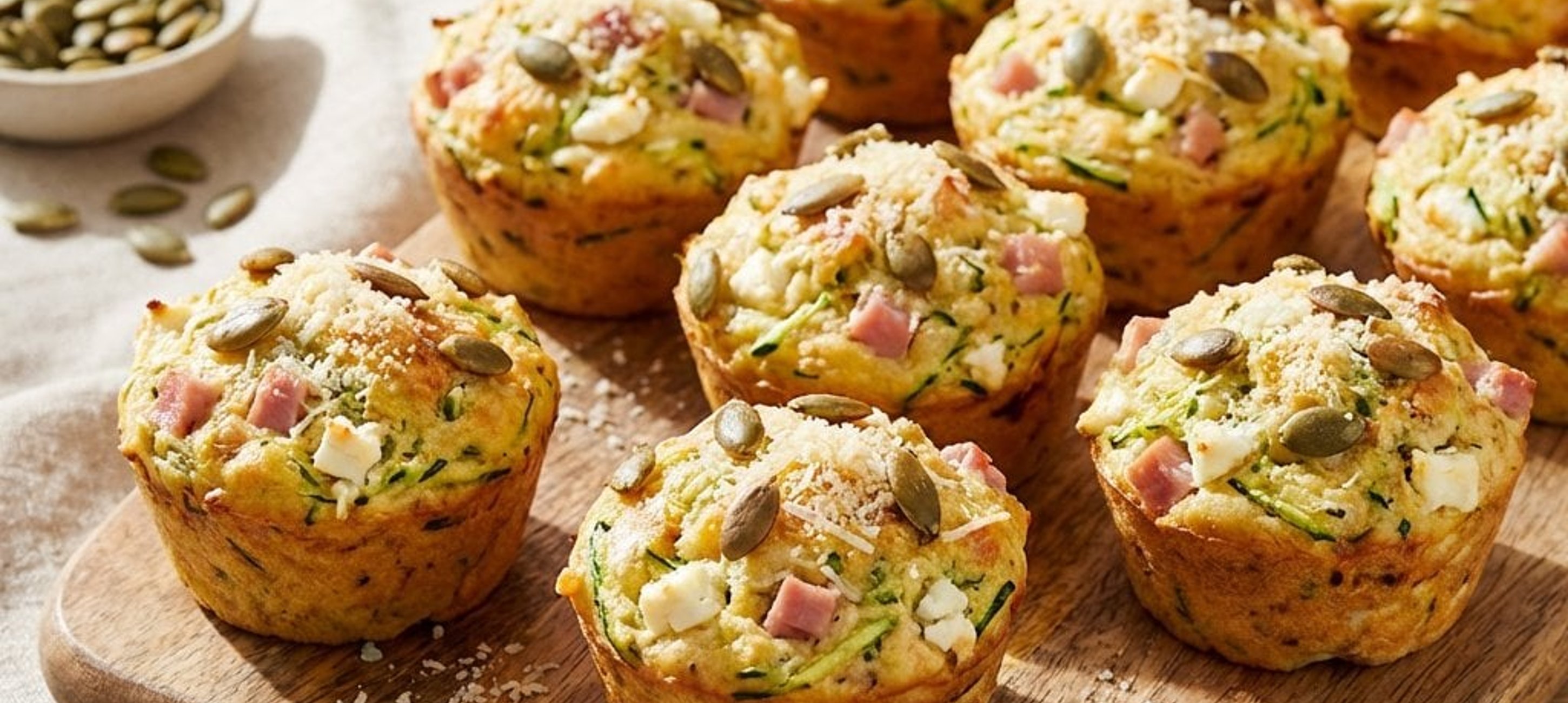 - 6Egy muffinformát béleljünk ki papírkosárkákkal, és osszuk el bennük egyenletesen a tésztát. A muffinok tetejét szórjuk meg reszelt parmezánnal és tökmaggal.