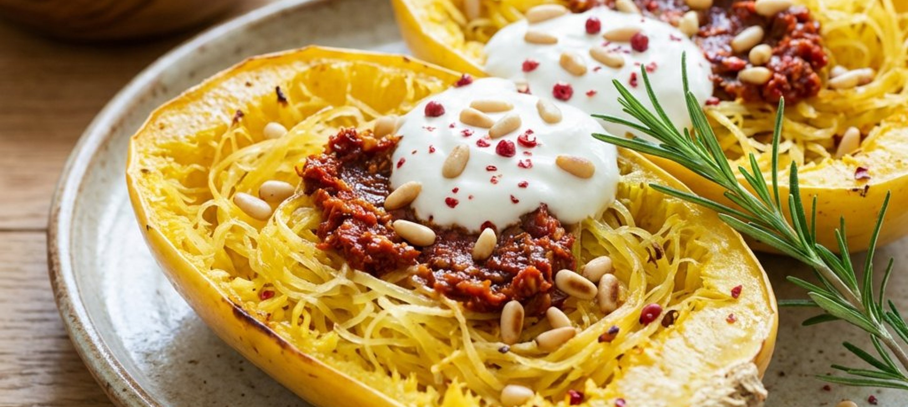 Tipp: Ha nem talál spagetti tököt, használhat kanadai sütőtököt is, bár annak a húsa nem válik szálakra, az ízkombináció továbbra is isteni lesz! A pestót hűtőben, olajjal lezárva napokig tárolhatja.