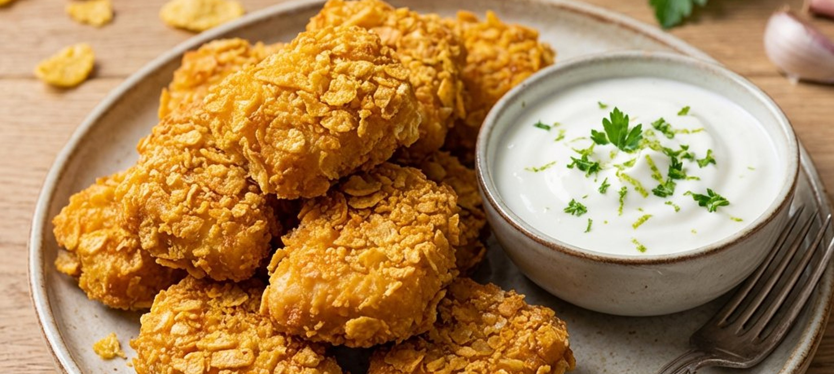 Tipp: A kukoricapelyhet ne darálja túl finomra, a nagyobb daraboktól lesz igazán ropogós a bunda!
