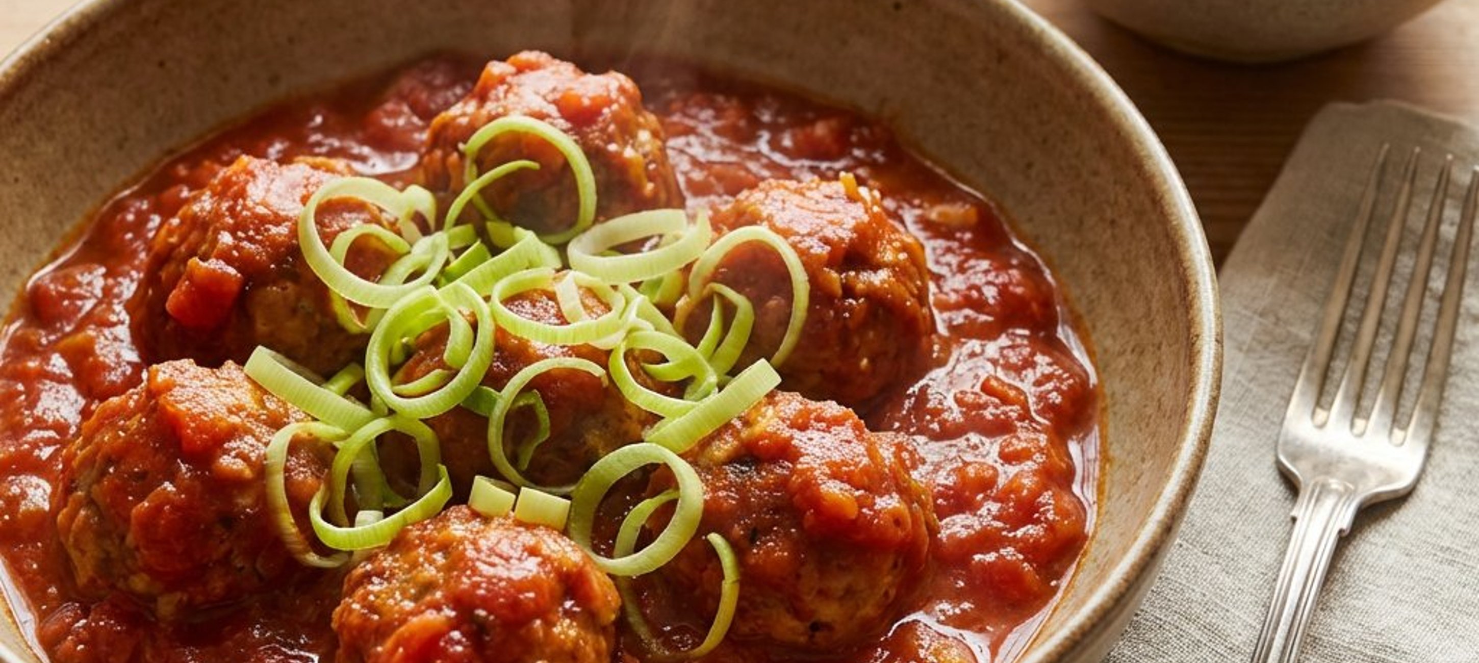 Tálalja a golyókat frissen, forró paradicsommártással és párolt jázmin rizzsel. A póréhagyma frissessége remekül kiegészíti a füstölt tofu karakteres ízét.
