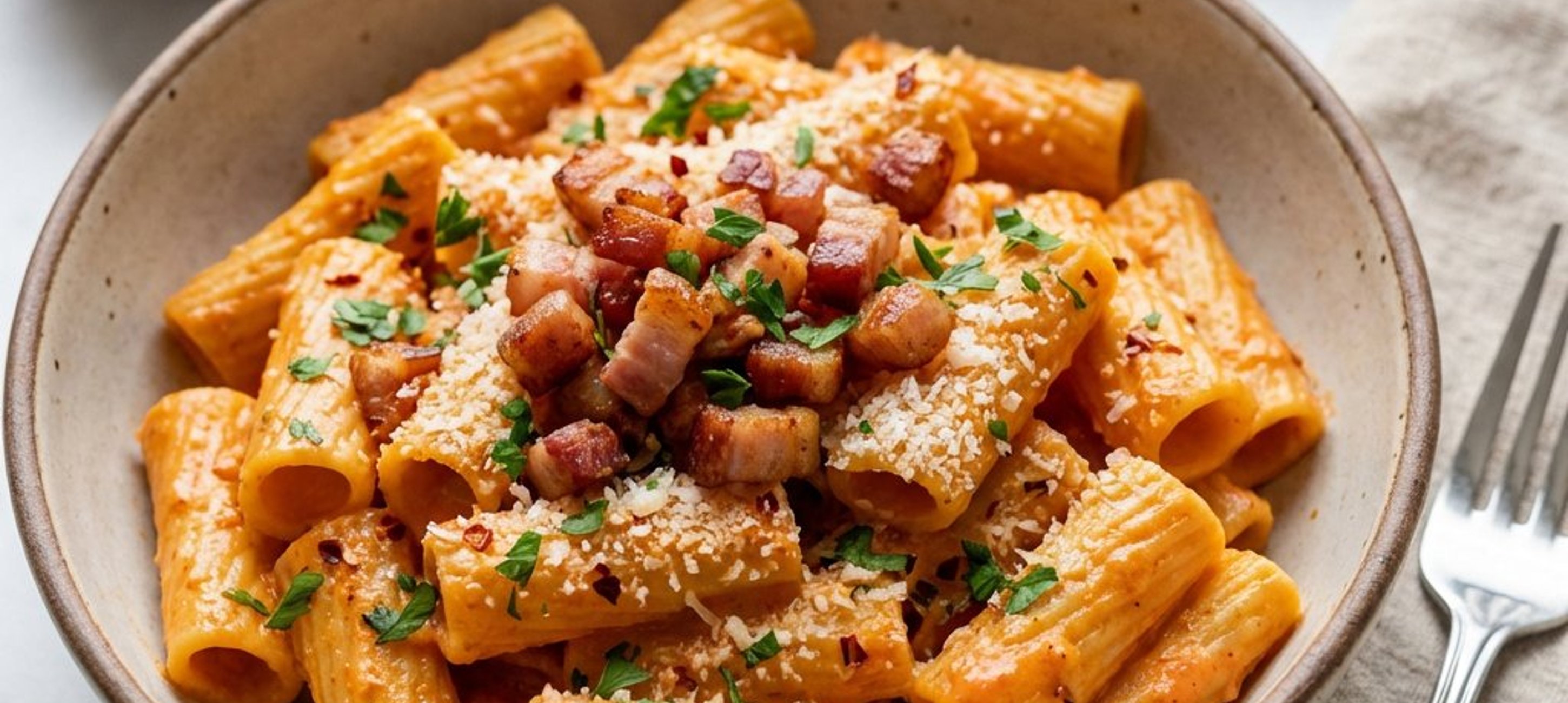 - 4A kifőtt tésztát forgasd össze a mártással, a pirított pancettával és az aprított petrezselyemmel. Tálaláskor szórd meg bőségesen finomra reszelt parmezán sajttal.