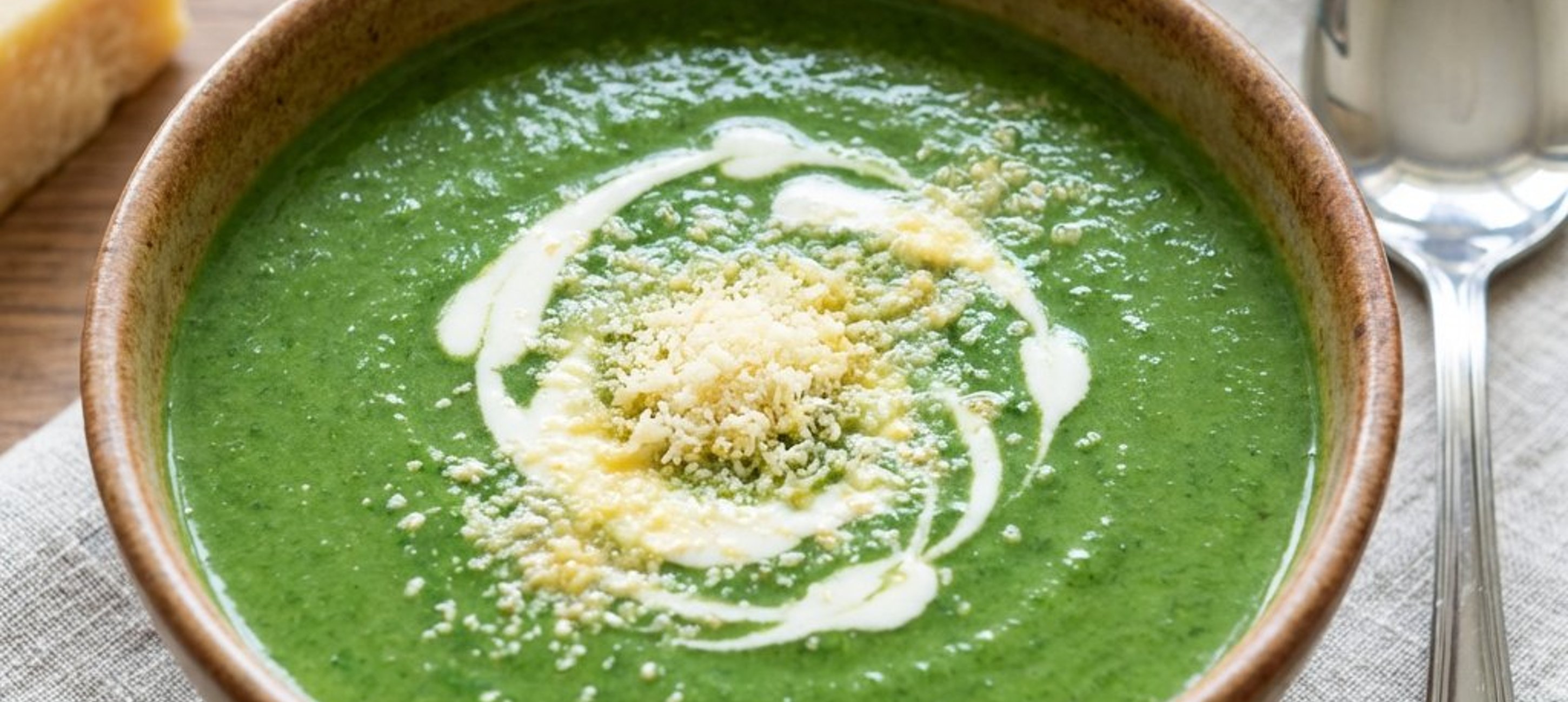 A spenótkrémleves akkor a legfinomabb, ha frissen reszelt parmezánnal tálaljuk, ami sós és diós aromájával tökéletesen kiegészíti a spenót lágy ízét.