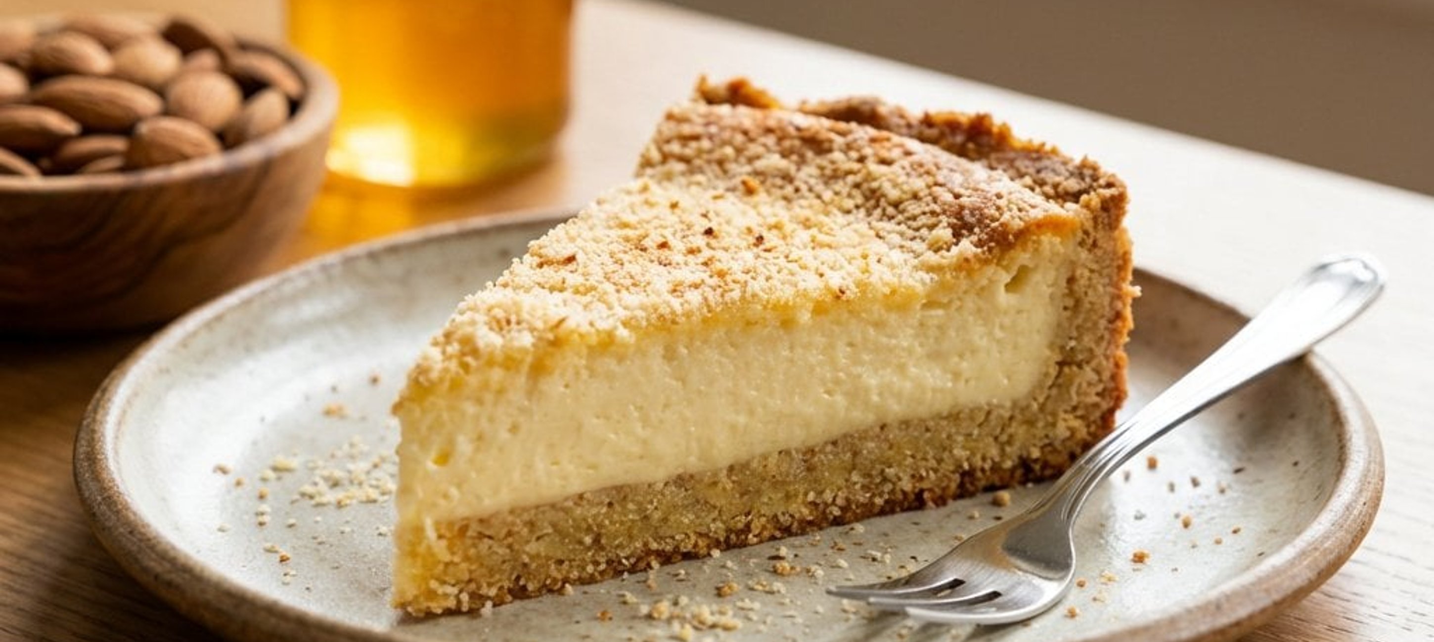 - 4A kisült alapra simítsuk rá a krémet, majd szórjuk meg a maradék 50 g mandulaliszttel. Tegyük vissza a sütőbe, és süssük további 30–35 percig.