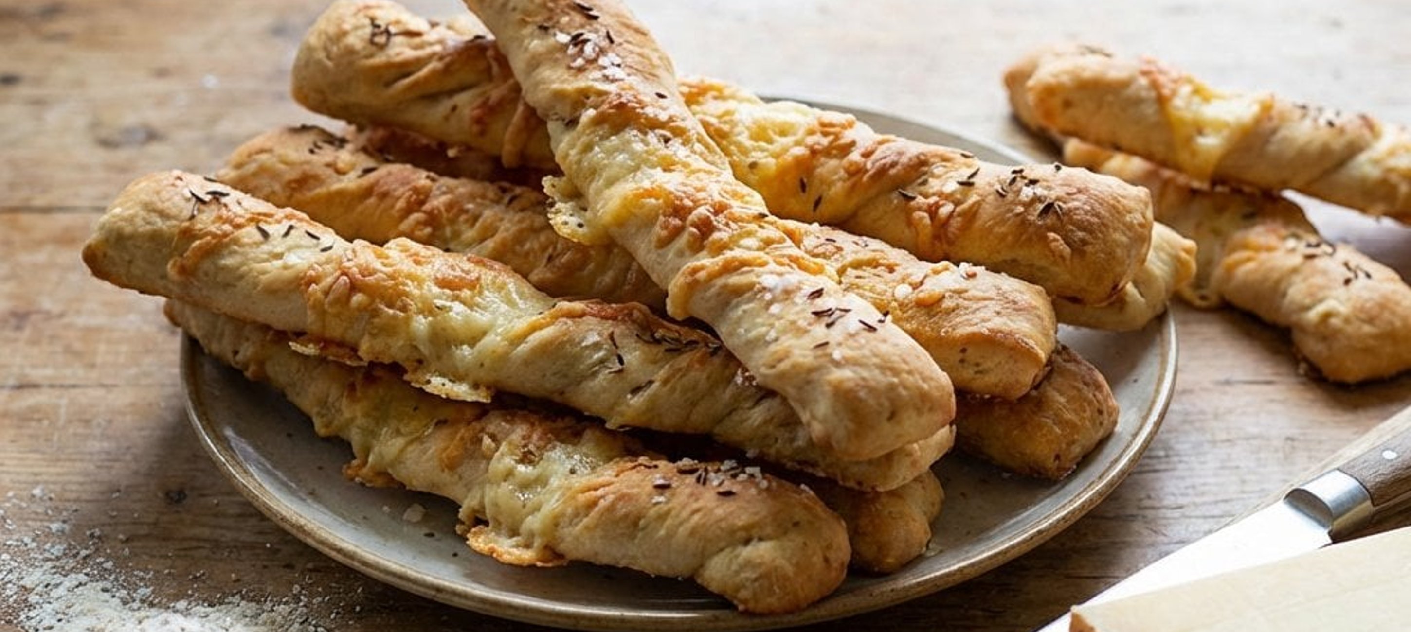 - 4A darabokból sodorjunk kb. 10 cm hosszú pálcikákat, és helyezzük őket sütőpapírral bélelt tepsire. Kenjük le a tetejüket felvert tojással. Ízlés szerint megszórhatjuk mákkal, szezámmaggal vagy köménnyel is. Hagyjuk kelni a tepsin további 30 percig.