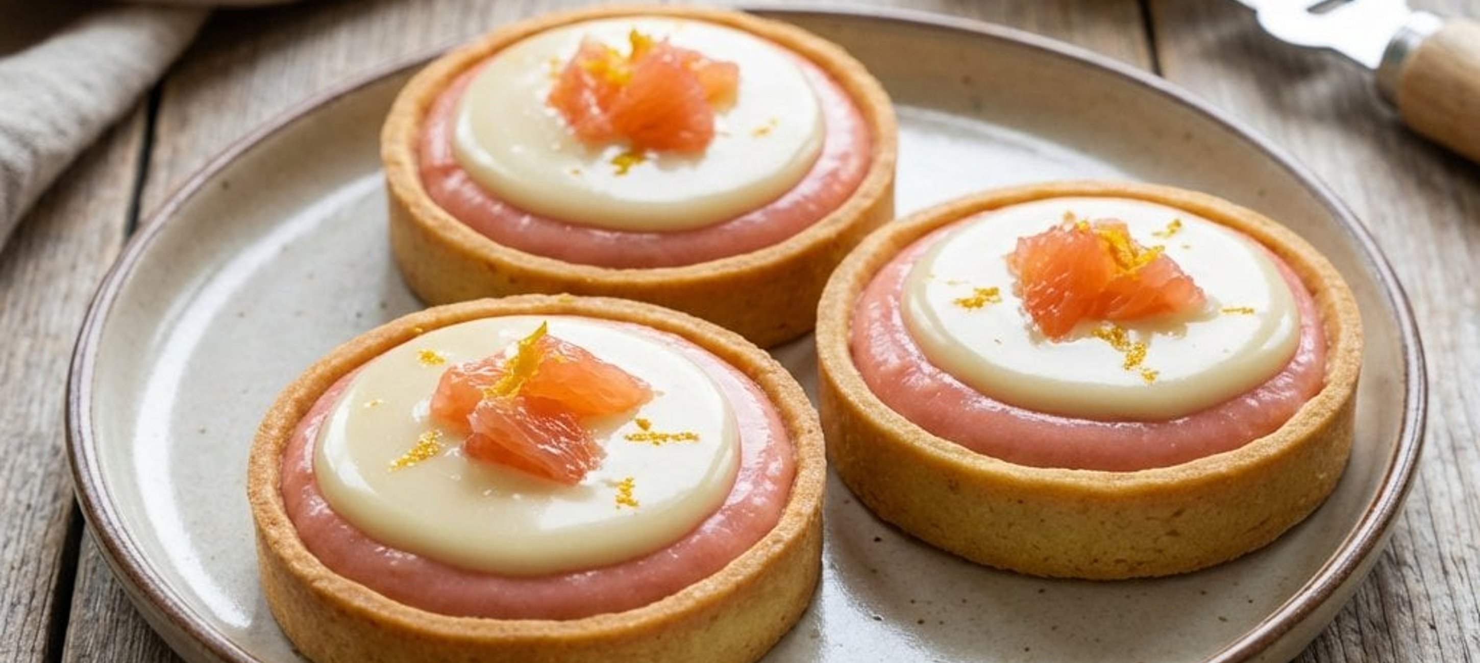 - 2A tartaletkák aljára tegyen először a grapefruitos krémből, majd öntse rá a ganache-t a peremig. Hagyja megdermedni a hűtőben. Díszítse ízlés szerint pisztáciával vagy grapefruit darabokkal.