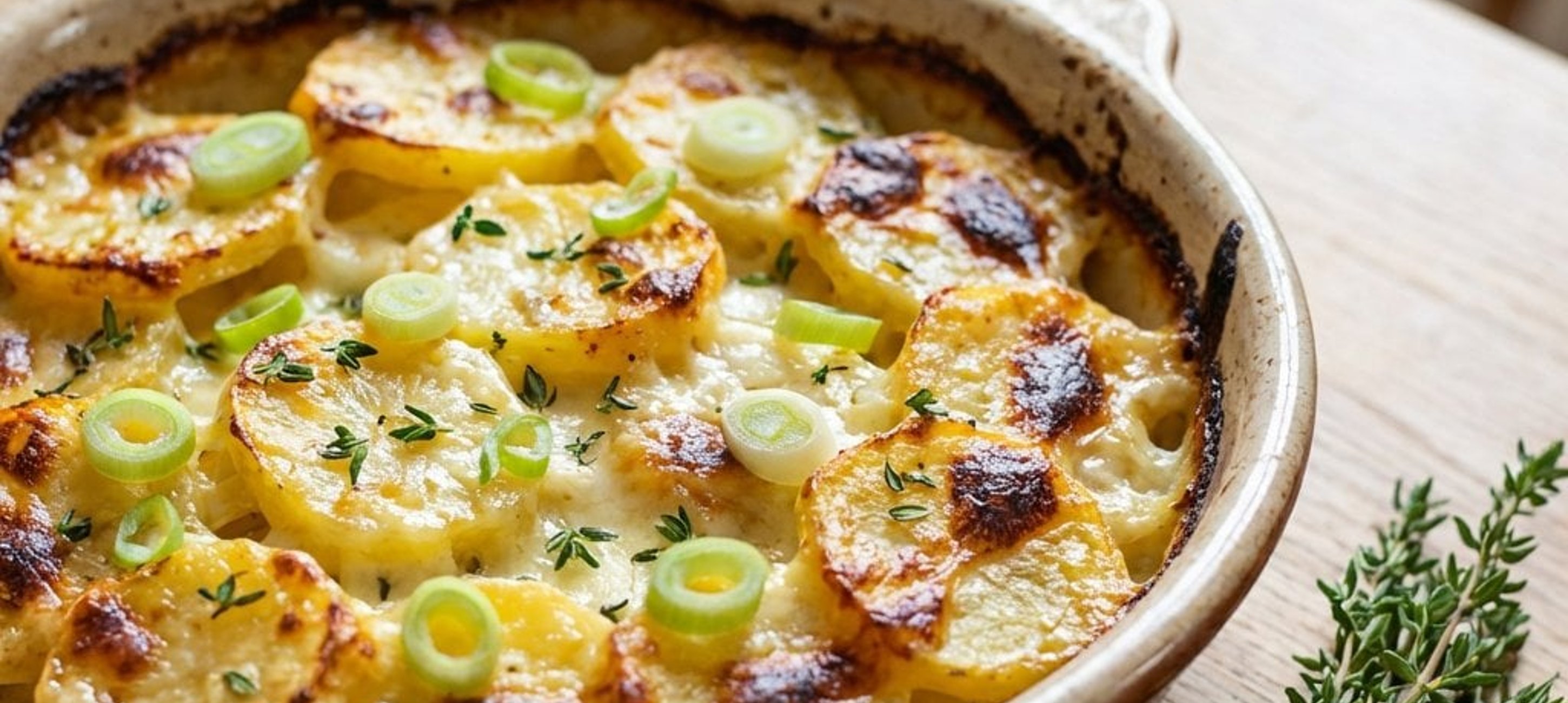 - 2Az újhagymát karikázzuk fel. Egy tűzálló tálat kenjünk ki a maradék vajjal. Rétegezzük bele a burgonya felét, enyhén sózzuk, borsozzuk, szórjuk meg egy kevés szerecsendióval, az újhagyma egy részével és kakukkfűvel. Folytassuk a rétegezést, amíg az összes alapanyag el nem fogy.