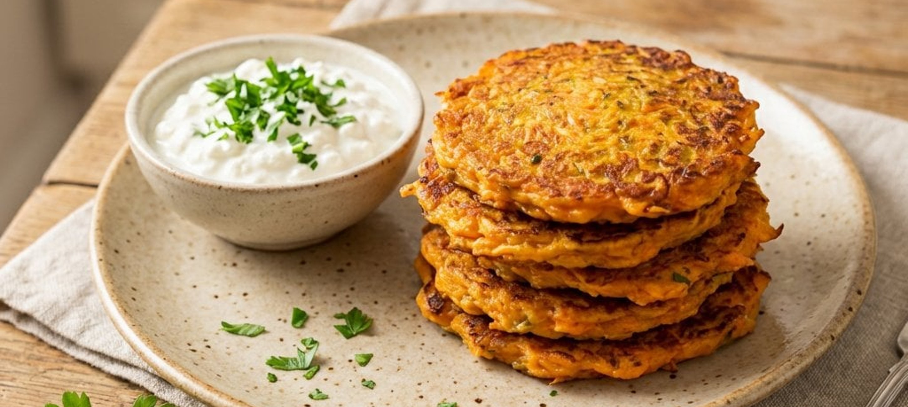 - 4A sárgarépás lepényeket kínálja natúr joghurttal és friss salátával a tökéletes ízélmény érdekében.