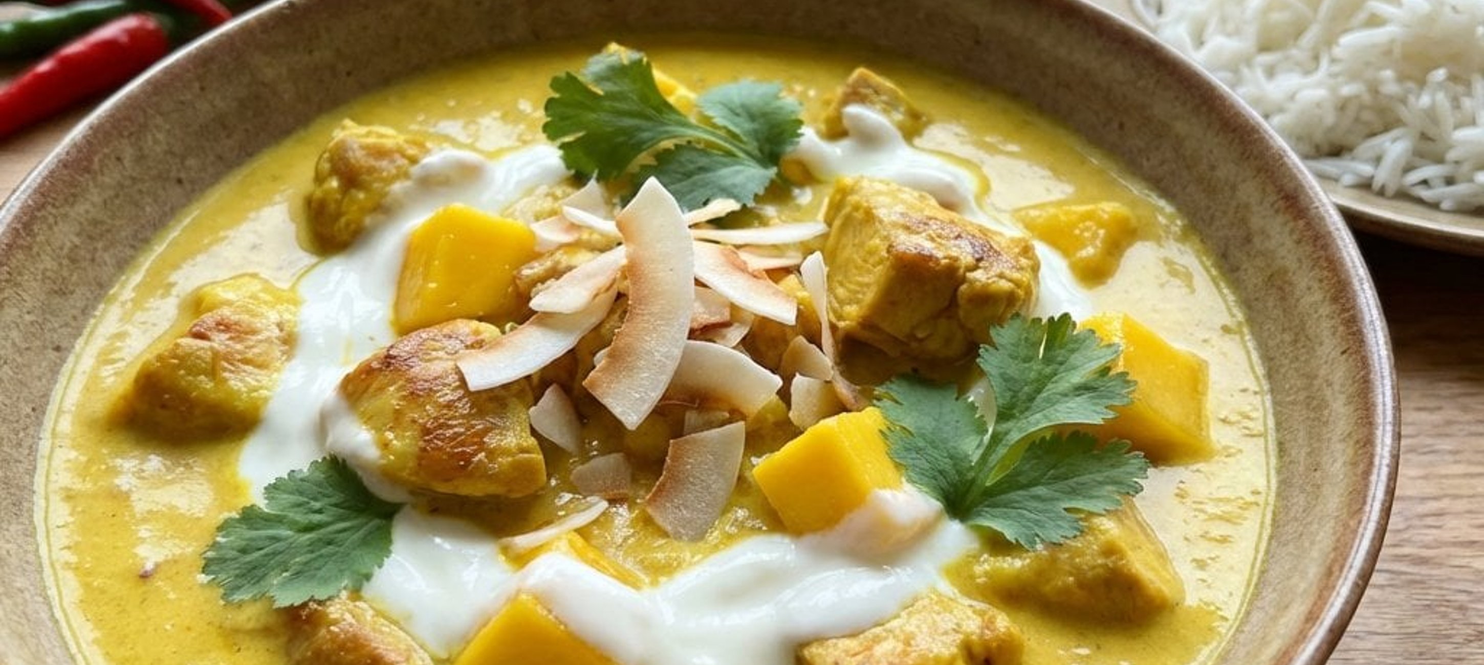 A curry pasztát érdemes egy percig pirítani az olajon, mielőtt felöntené a folyadékkal, mert így szabadulnak fel igazán az aromái. Ha krémesebb állagot szeretne, turmixolja össze az egyik mangót a kókusztejjel!