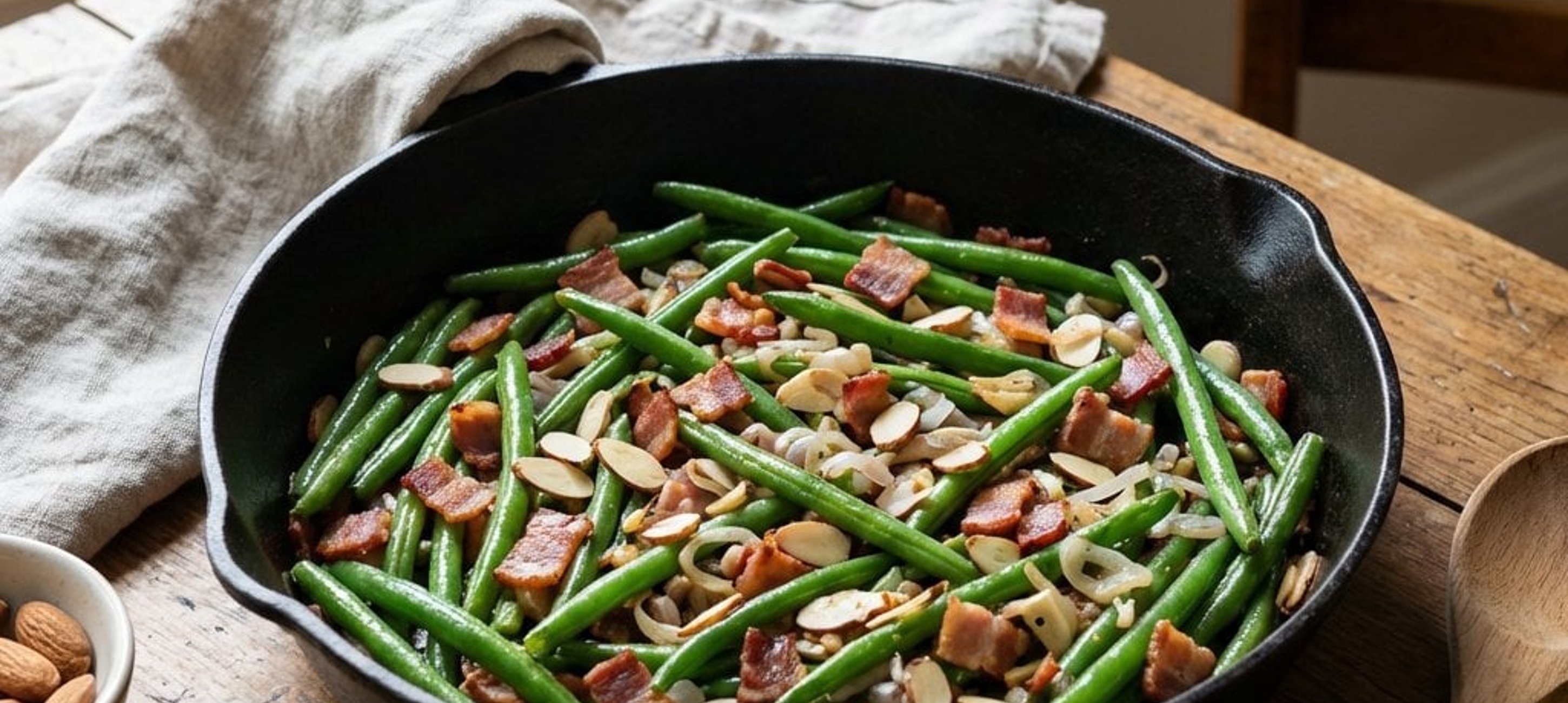 - 4Közben egy másik serpenyőben, zsiradék nélkül pirítsuk meg a mandulaszeleteket. Amikor a bab elkészült, keverjük hozzá a pirított mandulát, és azonnal tálaljuk.