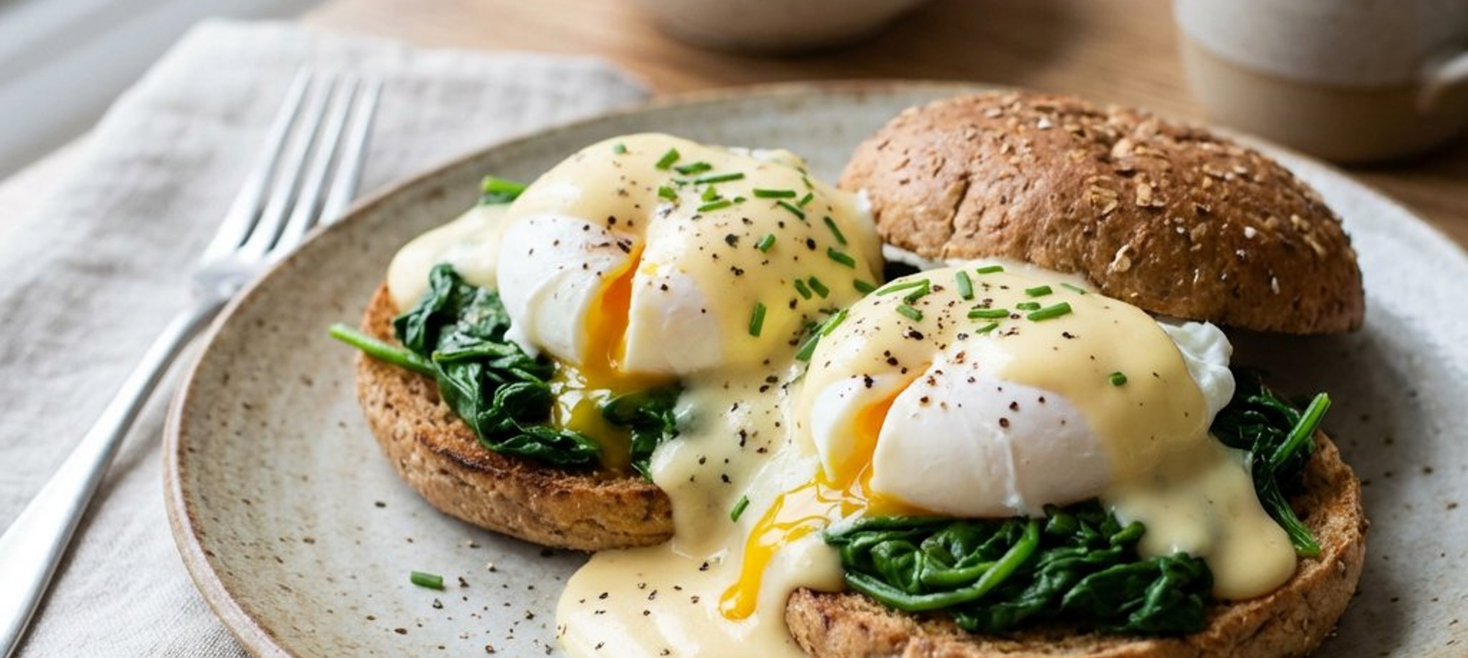 - 4Összeállítás: A zsemlék alsó felére halmozzuk rá a párolt spenótot, helyezzünk rá egy-egy buggyantott tojást, csorgassuk le a krémes sajtmártással, majd fedjük le a zsemlék tetejével. Azonnal tálaljuk.