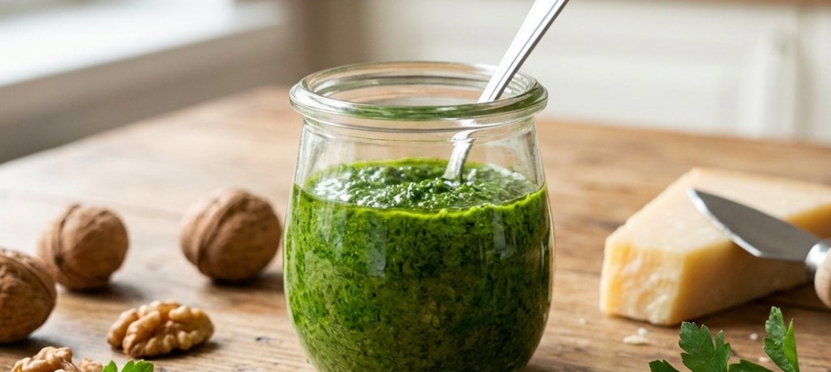 Tipp: A pesztót légmentesen záródó üvegben, a tetejére egy vékony réteg olívaolajat öntve akár egy hétig is eltarthatod a hűtőben.