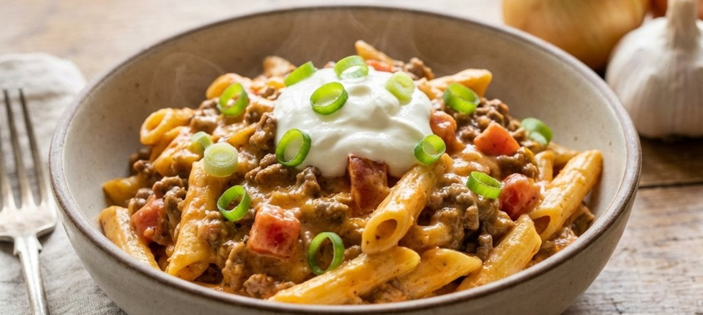 - 3Tegye vissza a húst a lábasba, és főzze közepes lángon 8-10 percig. Ezután adja hozzá a száraztésztát, és főzze 5-8 percig (vagy a csomagoláson található utasítás szerint). Amint a tészta megpuhult, keverje hozzá a reszelt cheddar sajtot, és várja meg, amíg teljesen felolvad (1-2 perc). Végül öntse hozzá a főzőtejszínt, és forralja össze az egészet 2-3 perc alatt.