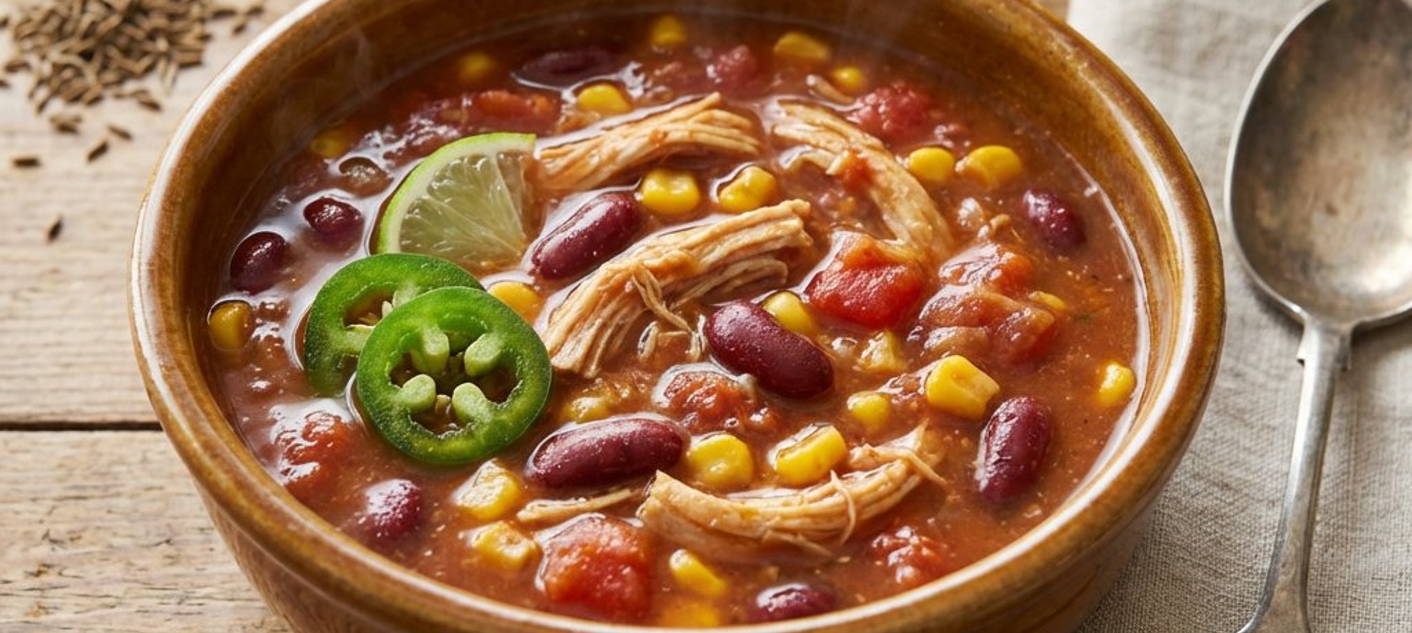 - 2Keverje hozzá a már megfőtt, felaprított csirkehúst, a vörösbabot, a darabolt paradicsomot, a kukoricát, a csirke alaplevet és a paradicsompürét. Fűszerezze római köménnyel és chili porral.