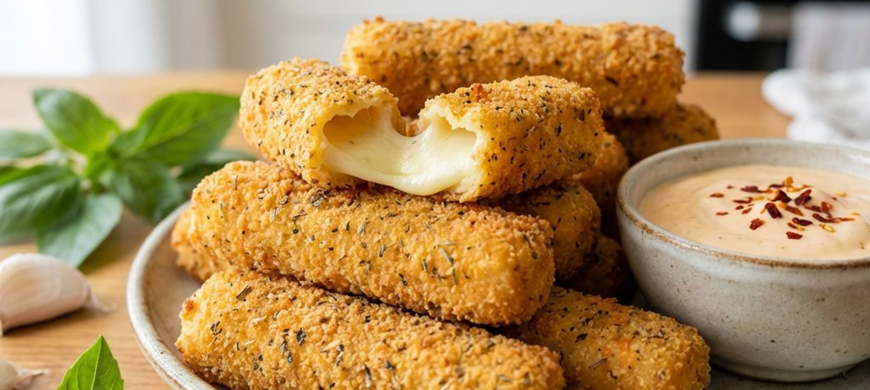 - 1A mozzarellát vágjuk fel kb. 1 cm vastagságú rudakra. A tojásokat verjük fel egy kevés sóval, a zsemlemorzsát pedig keverjük össze az olasz fűszerkeverékkel.