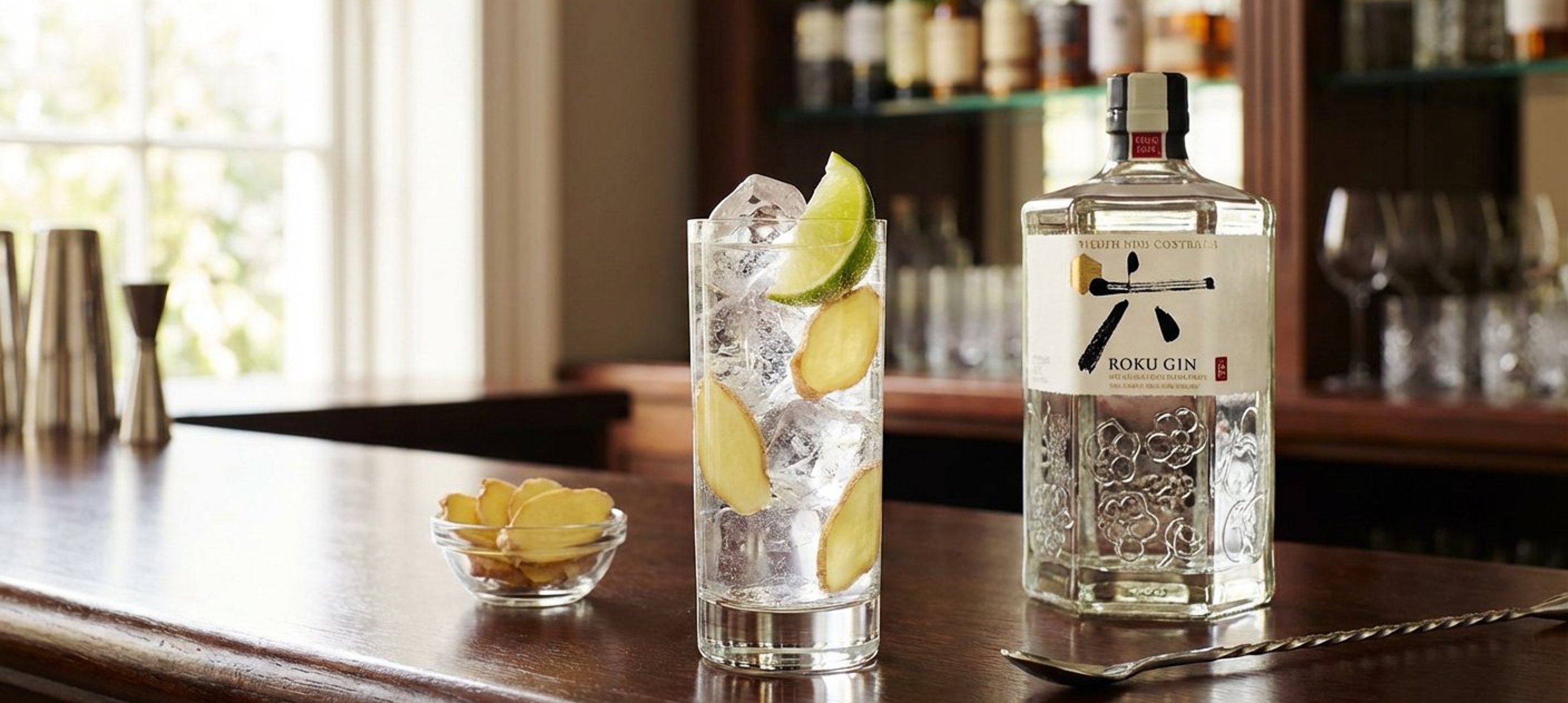 A Roku Gin hat különleges japán gyógynövényt tartalmaz, amelyek a négy évszakot jelképezik. A friss gyömbér kiemeli a gin fűszeres jegyeit.