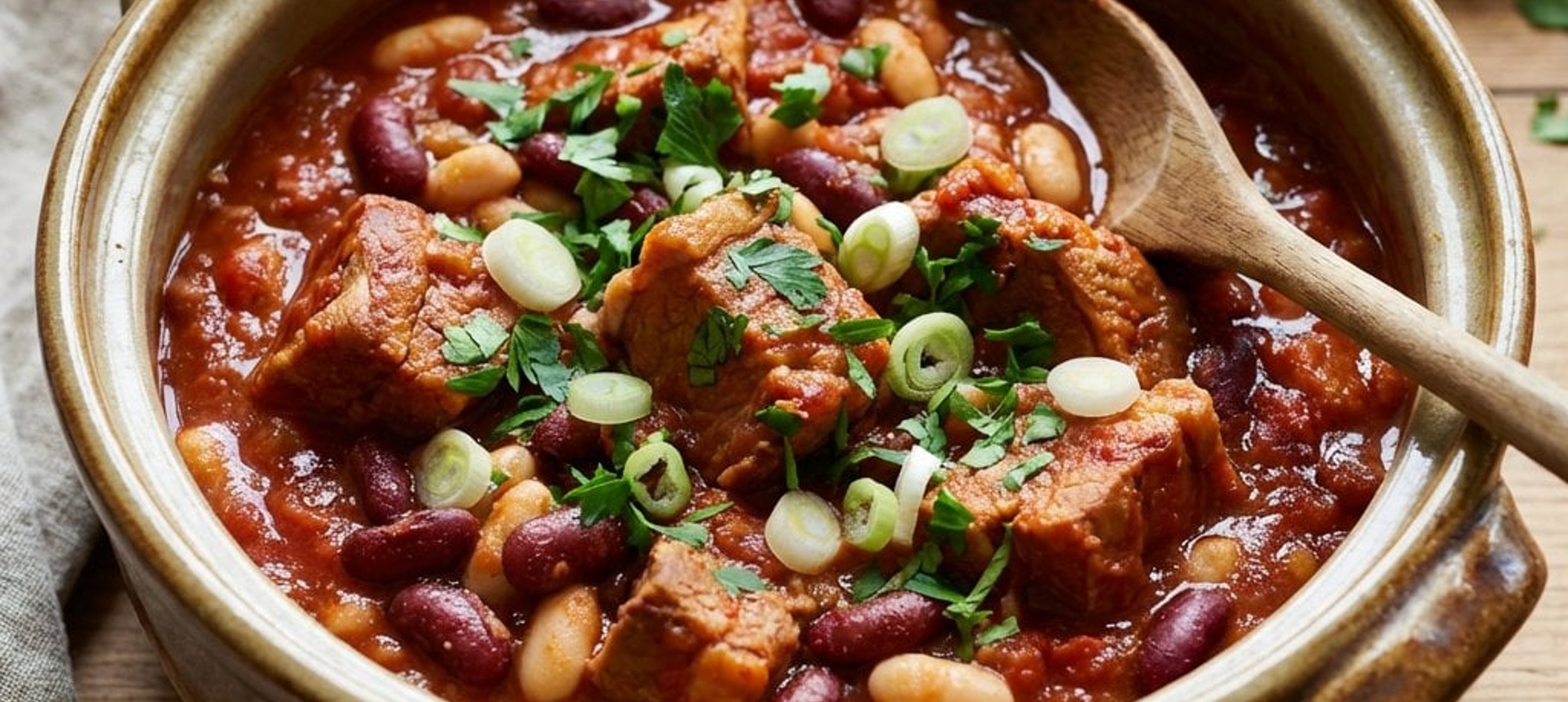 - 4Végül adjuk hozzá a leöblített vörös- és fehérbabot, vegyük közepesre a lángot, és főzzük össze további 10 percig. Zárjuk el a tüzet, szórjuk meg friss petrezselyemmel és újhagymával, majd tálaljuk.