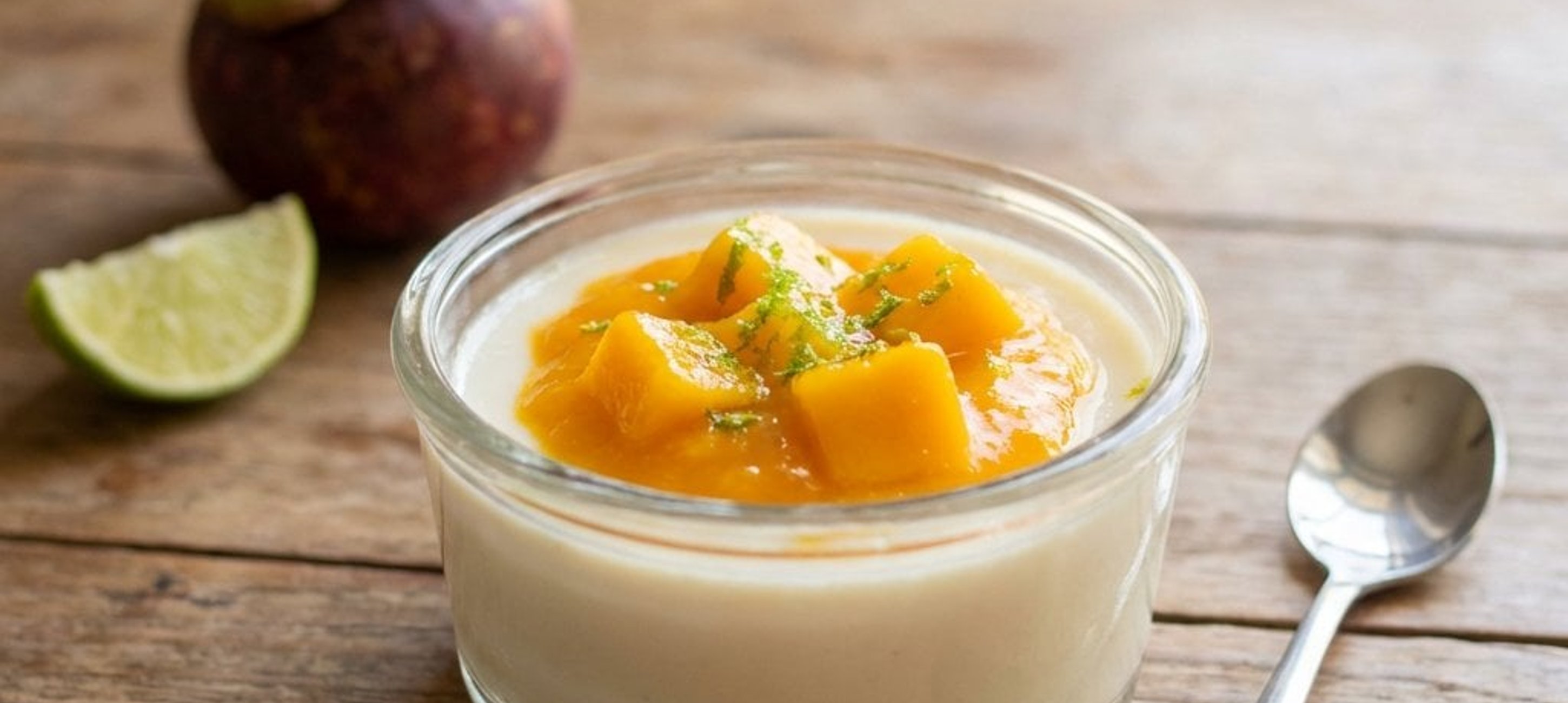 A mangosztán héja nem ehető, de a fehér húsú gerezdek isteni aromát adnak a desszertnek. Ügyeljen rá, hogy a zselatint ne forralja fel, mert elveszítheti zselésítő erejét!