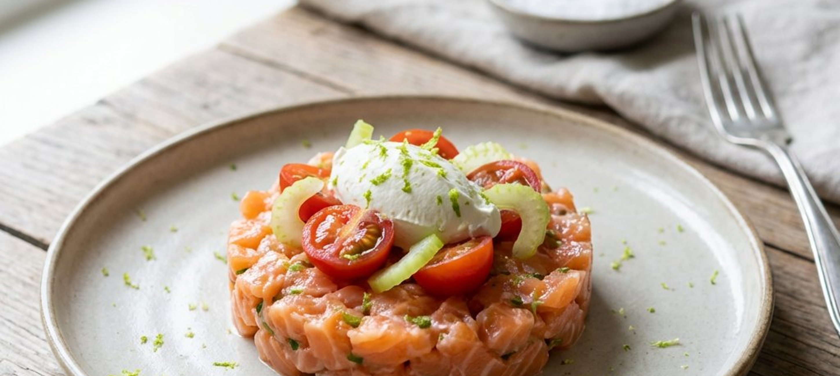 - 3Helyezd a tetejére a lazactatárt, majd díszítsd frissen reszelt lime-héjjal a még intenzívebb aroma érdekében.
