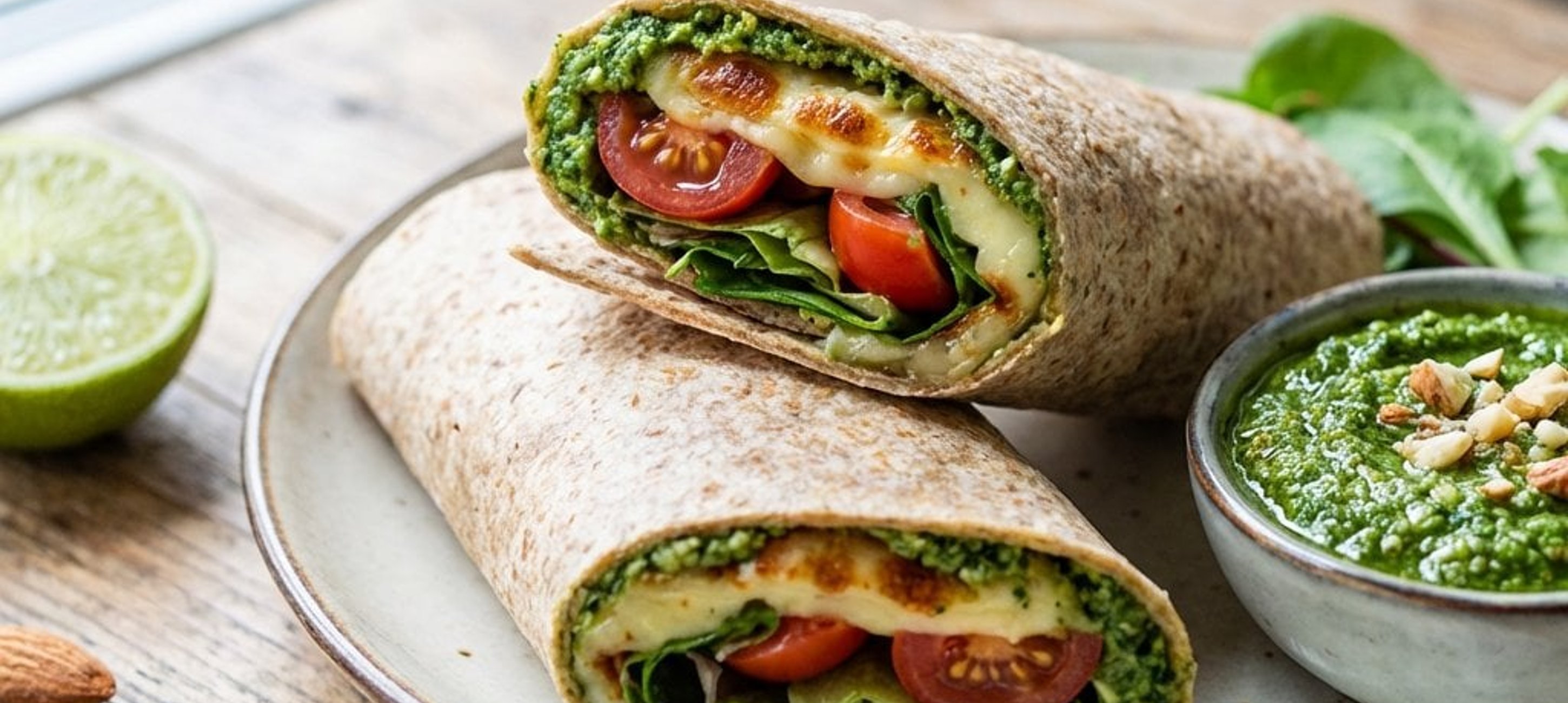 Próbáld ki a wrapet egy kevés friss chilivel is, ha szereted a csípős ízeket! A házi spenótpesztó hűtőben pár napig eláll, így más ételekhez is felhasználhatod.
