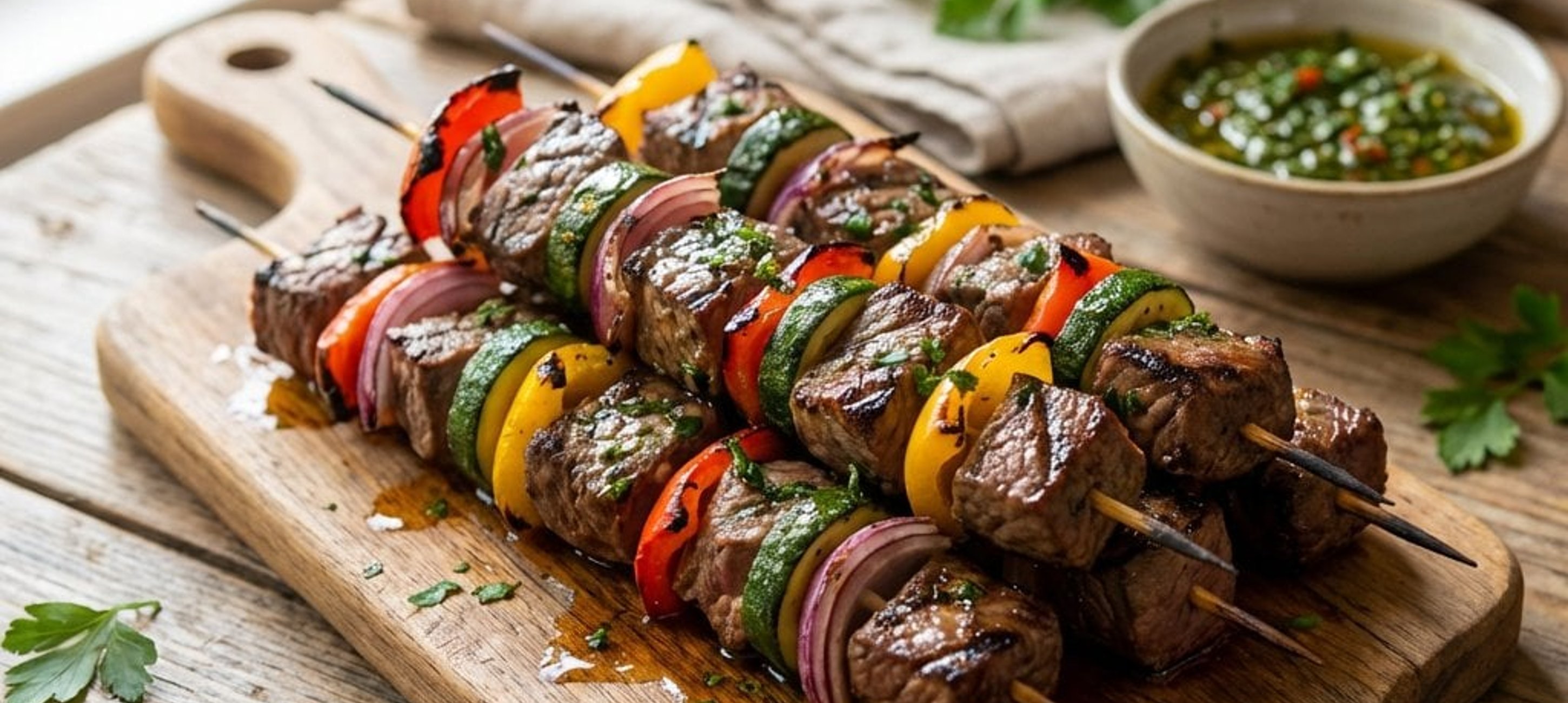 - 3Grillezze a nyársakat közepes lángon körülbelül 12-15 percig, rendszeresen forgatva, amíg a hús minden oldala szépen megpirul, a zöldségek pedig megpuhulnak.