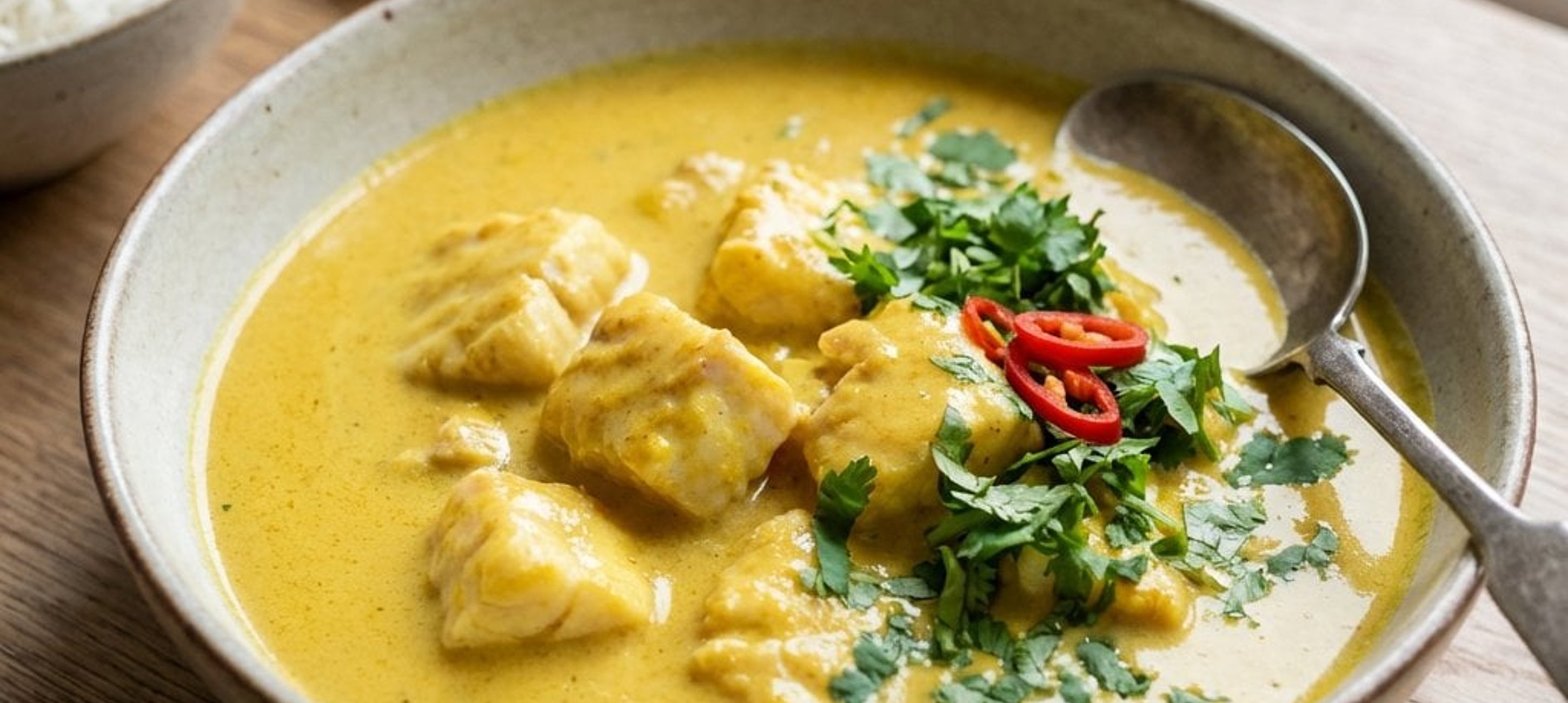 - 3Tálaláskor locsolja meg friss kókusztejjel vagy kókuszkrémmel, és szórja meg bőségesen friss, aprított korianderrel. Kínáljon mellé párolt basmati rizst.