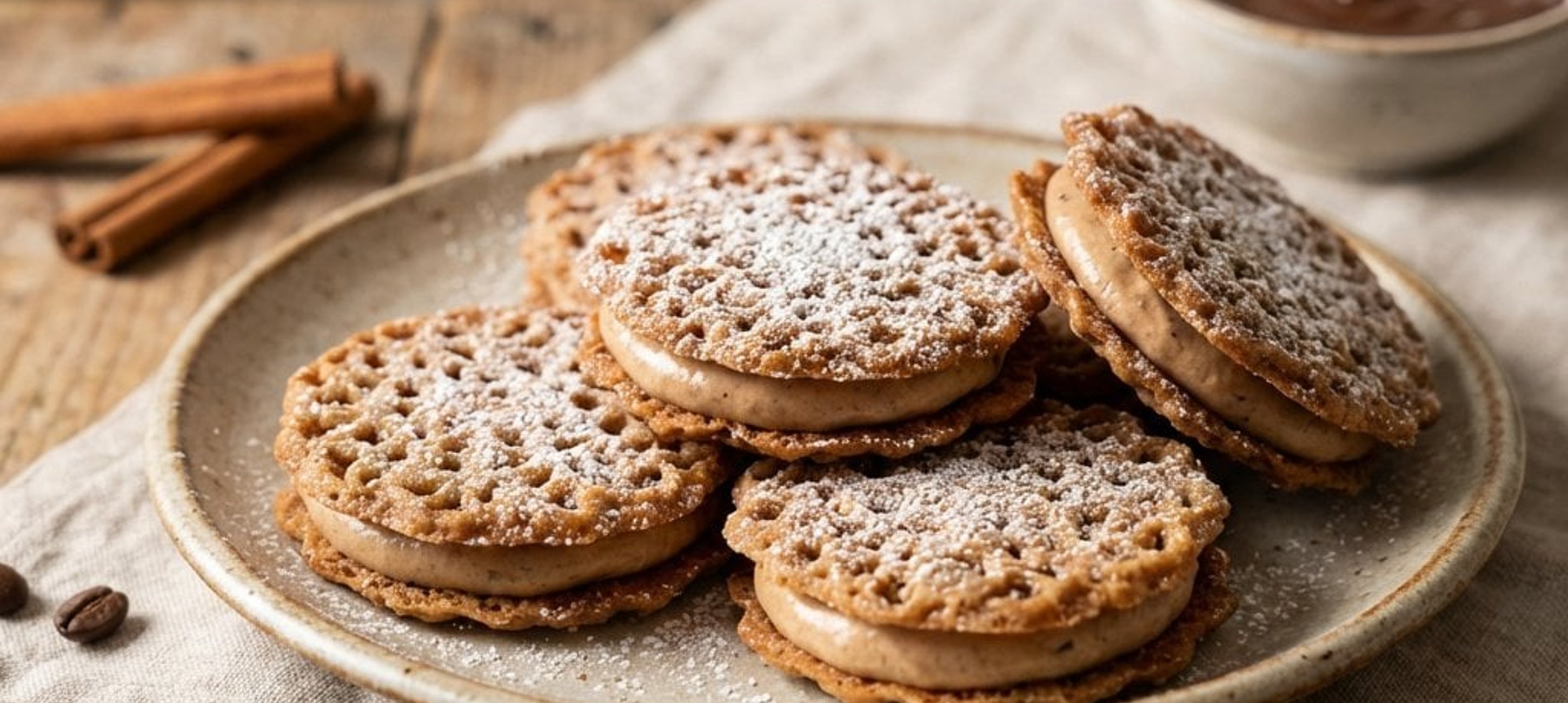 - 2A kihűlt kekszeket ragassza össze az elkészített krémmel. Ha még látványosabbá szeretné tenni, habzsák segítségével nyomjon krémet a keksz szélére, a közepét pedig töltse meg lekvárral.