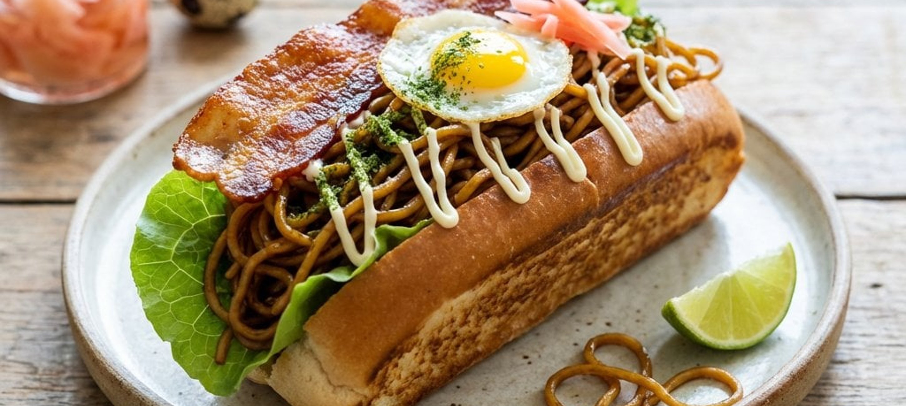 - 1A kifliket óvatosan vágjuk fel. Először töltsük meg a pirított tésztával, majd helyezzünk bele egy-egy salátalevelet és a ropogós szalonnát. Díszítsük majonézzel, helyezzük rá a fürjtojásokat, szórjuk meg az alga porral, és tálaljuk a savanyított gyömbérrel.