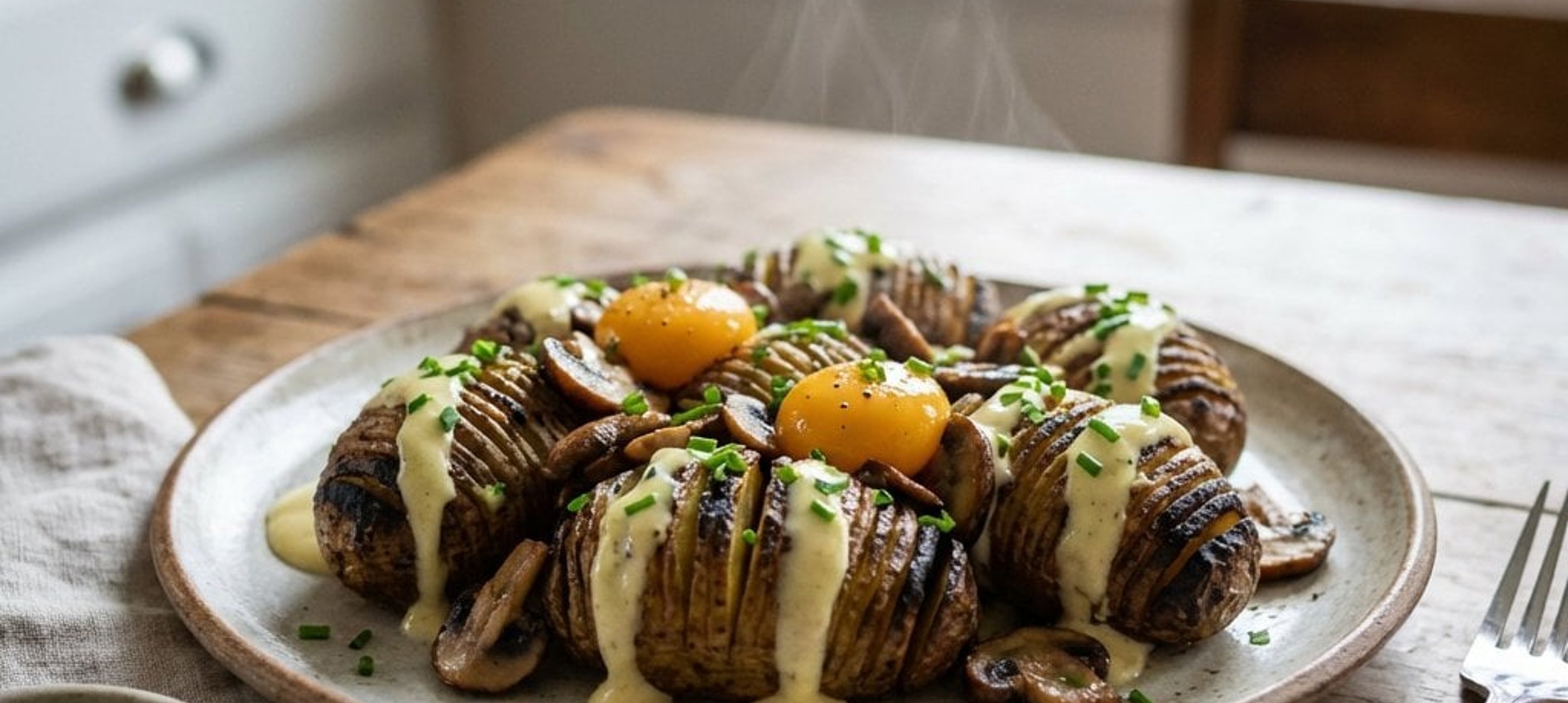- 1A tálaláshoz először a mártást merjük a tányérra, helyezzük rá a hamus burgonyákat, szórjuk meg pelyhes sóval. Osszuk el rajta a pirított gombát, a marinált tojássárgájákat vágjuk negyedekbe és helyezzük a mártásba. Szórjuk meg finomra vágott metélőhagymával és ropogós töpörtyűvel. A tetejére tehetünk még pár csepp szarvasgomba olajat és fehérborsot.