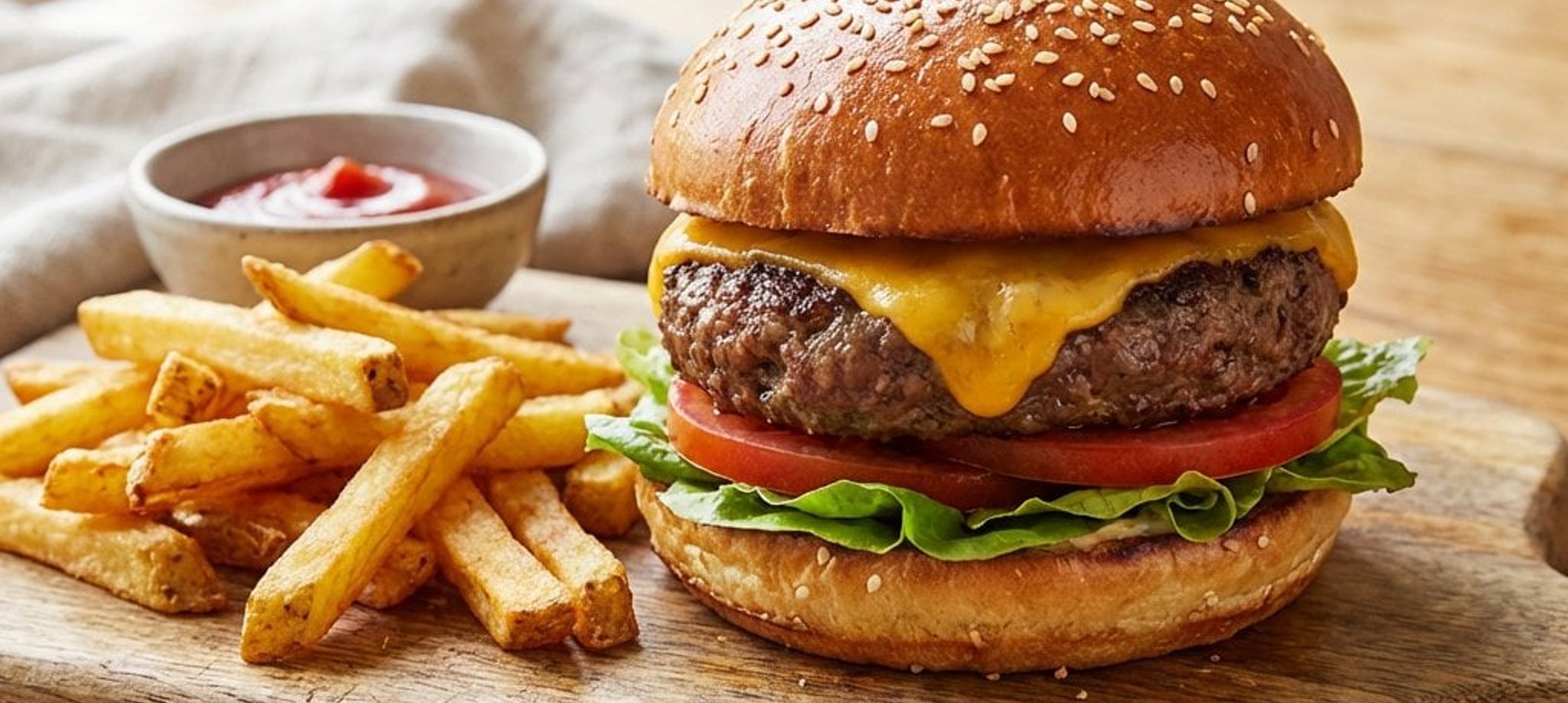 Tálalja a hamburgert frissen, amíg a zsemle ropogós, a hús pedig szaftos! A sült krumpli mellé kínálhat extra házi szószt is.
