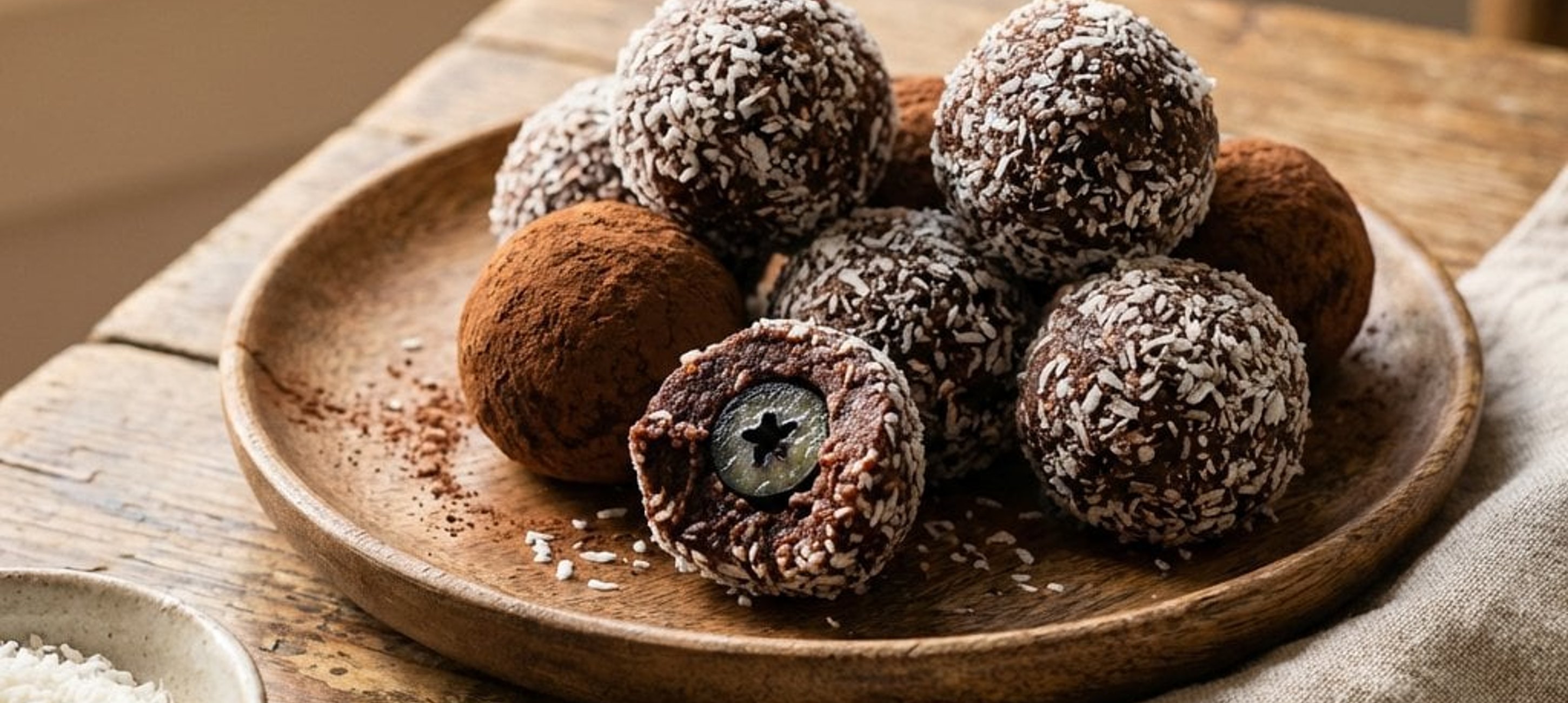 - 3A kész golyókat forgassa meg kókuszreszelékben. Tálalás előtt tegye vissza a hűtőbe legalább 30 percre, hogy az ízek összeérjenek és a golyók megszilárduljanak. Frissen vagy 24 órán belül fogyasztandó.