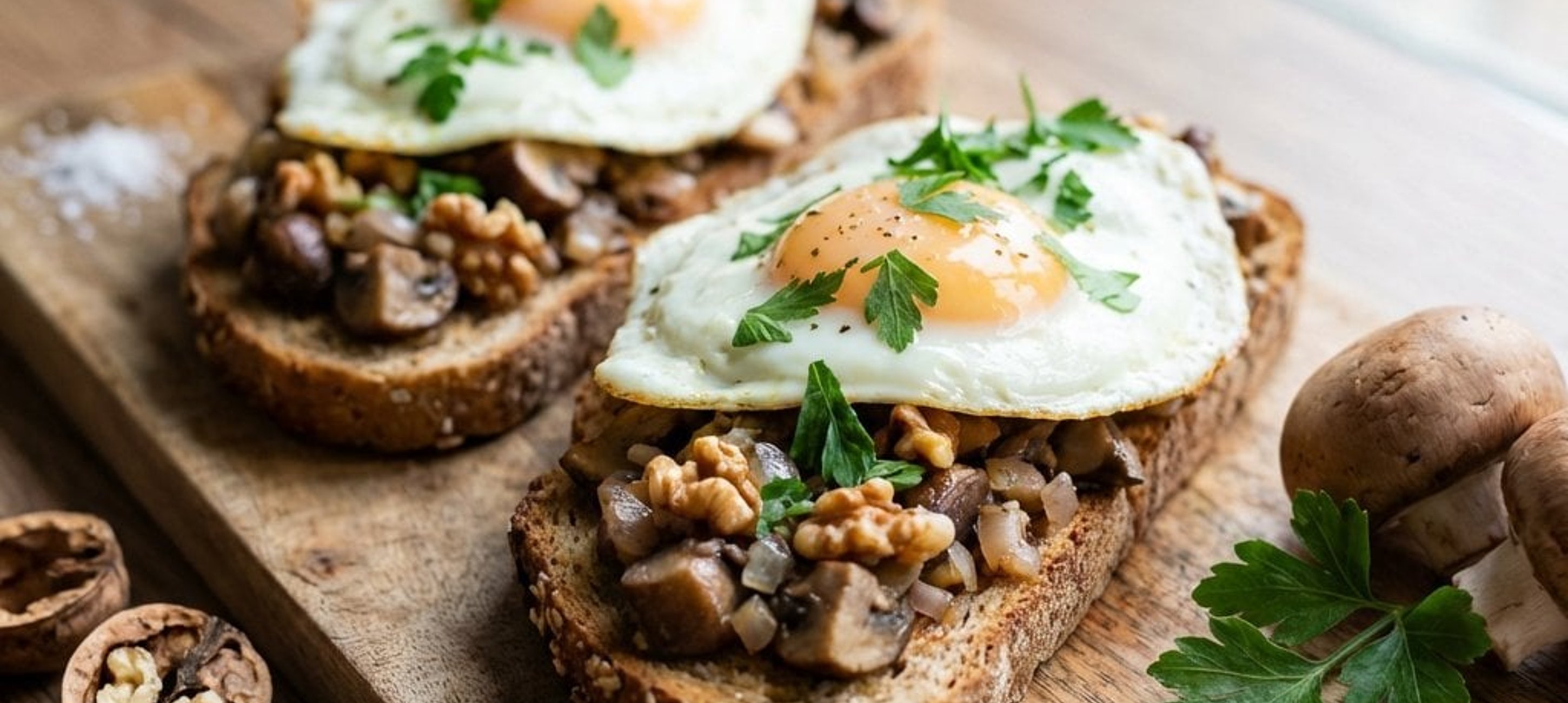 - 3A gombás keveréket halmozzuk a pirított bagettszeletekre, és helyezzünk a tetejükre egy-egy tükörtojást. Melegen tálaljuk.