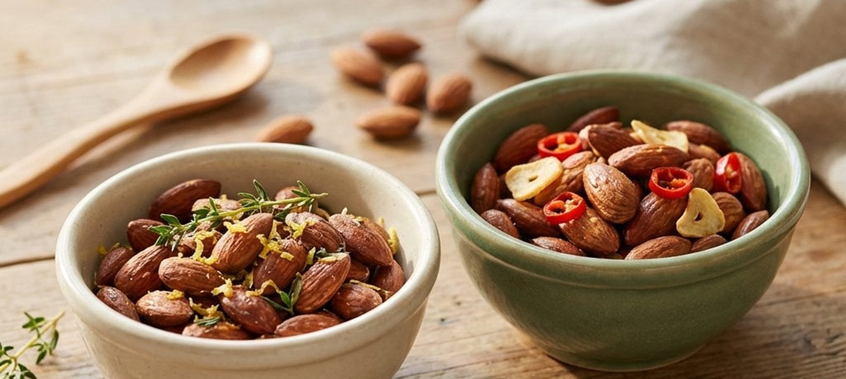 Tálalja a mandulát kis tálkákban, még langyosan, hogy az illatok és az ízek a legjobban érvényesüljenek. Kiváló kísérője egy pohár száraz fehérbornak vagy kézműves sörnek.