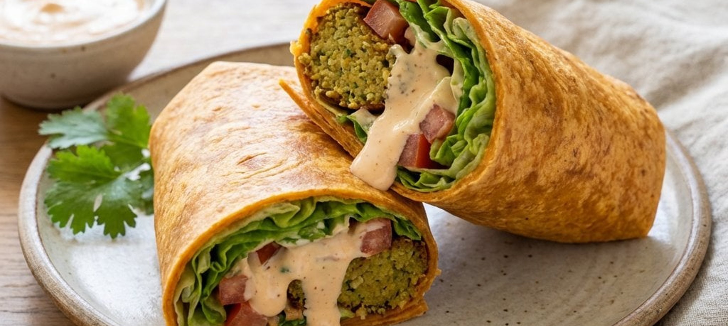 - 8Hajtsuk félbe a tortillákat, töltsük meg salátával, falafellel, és bőségesen locsoljuk meg a chili-lime majonézzel. Jó étvágyat!