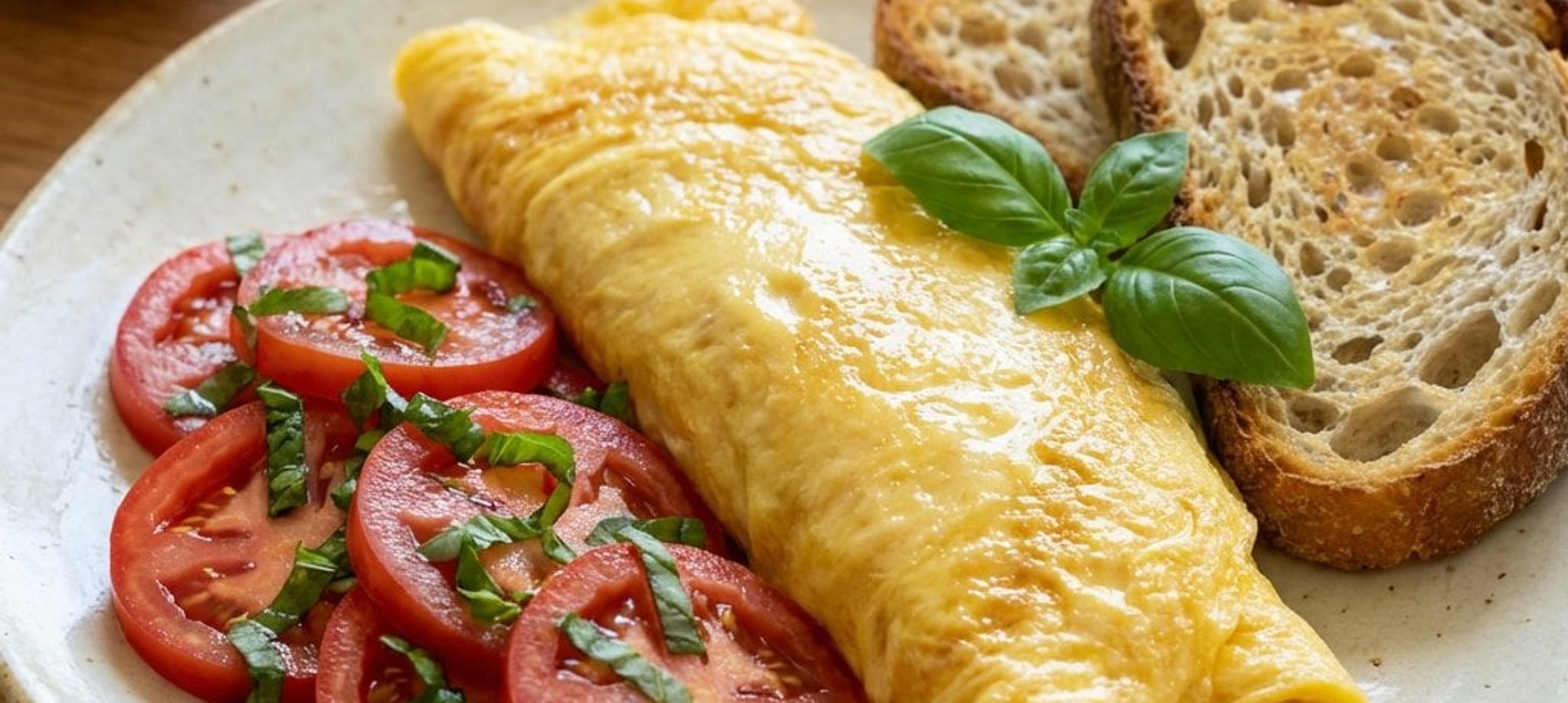 - 2Egy közepes tálban verje fel a tojásokat, ízesítse sóval és borssal. Egy serpenyőben (kb. 18 cm átmérőjű) hevítse fel az olajat, öntse bele a tojást, és alacsony-közepes lángon kevergesse, amíg az omlett nagy része meg nem sül. Ezután vegye le a lángot a legalacsonyabb fokozatra, és várja meg, amíg a felülete szép fényes lesz, de már nem folyós. A kész omlettet tekerje fel, és csúsztassa egy tányérra.