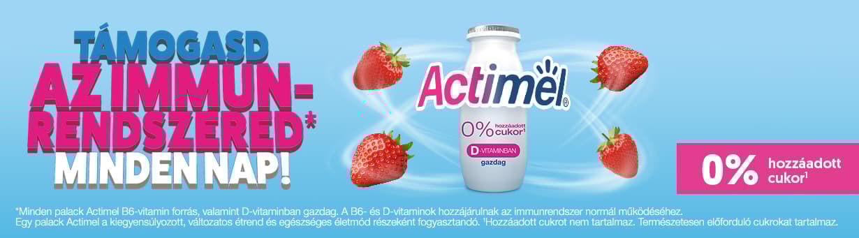 *Minden palack Actimel B6-vitamin forrás és D-vitaminban gazdag, mely vitaminok hozzájárulnak az immunrendszer normál működéséhez. 1 palack Actimel a kiegyensúlyozott és változatos étrend, valamint egészséges életmód részeként fogyasztandó!