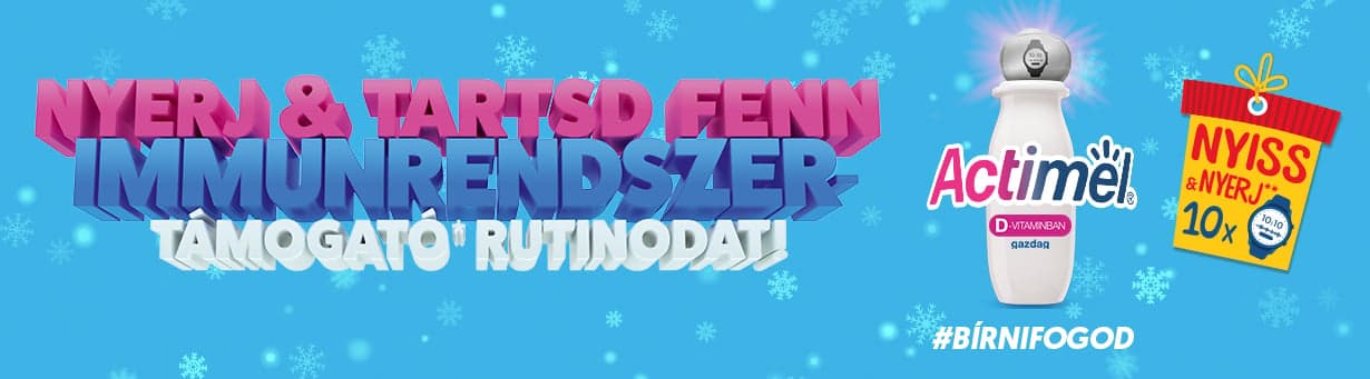 *Every bottle of Actimel is a source of vitamin B6 and rich in vitamin D. Vitamins B6 and D contribute to the normal functioning of the immune system. A bottle of Actimel should be consumed as part of a balanced, varied diet and healthy lifestyle. **Open & Win one of the 10 Garmin smartwatches. Purchase Actimel with promotional packaging between 2021.11.01.–2021.12.31. Keep the receipt and the winning lid! For more information and game rules: www.actimel.hu/nyerj