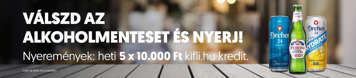 Vásárolj egyidejűleg 4 db bármilyen Dreher 24 vagy Peroni 0.0 alkoholmentes sört és tiéd lehet a heti 5 x 10.000 Ft értékű Kifli kredit egyike.