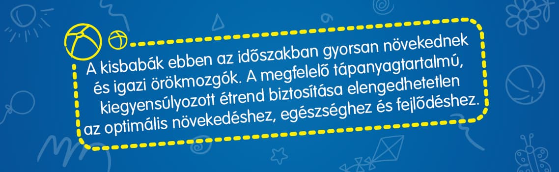 A kisbabák ebben az időszakban gyorsan növekednek és igazi örökmozgók. A megfelelő tápanyagtartalmú, kiegyensúlyozott étrend biztosítása elengedhetetlen az optimális növekedéshez, egészséghez és fejlődéshez.
