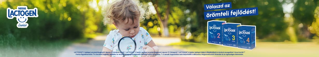Gyermeked minden egyes nap növekszik, tanul, újabb és újabb akadályokat küzd le és mindig meg tud lepni valami újdonsággal. Ezekkel a fontos kis lépésekkel tapasztal meg egyre többet a nagyvilágból. A Lactogen® 3 Junior tejalapú anyatej-kiegészítő tápszer tehéntej alapú, ugyanakkor a benne található összetevőket, tápanyagokat a gyermekkor igényeinek megfelelő mennyiségben és összetételben tartalmazza. A Lactogen® 3 tejalapú anyatej-kiegészítő tápszer fogyasztása a kiegyensúlyozott, vegyes étrend részeként hozzájárul a kisgyermekek számára szükséges vitaminok és ásványi anyagok biztosításához. Fontos figyelmeztetés! A csecsemő legjobb tápláléka az anyatej. A legegészségesebb táplálási mód a szoptatás.