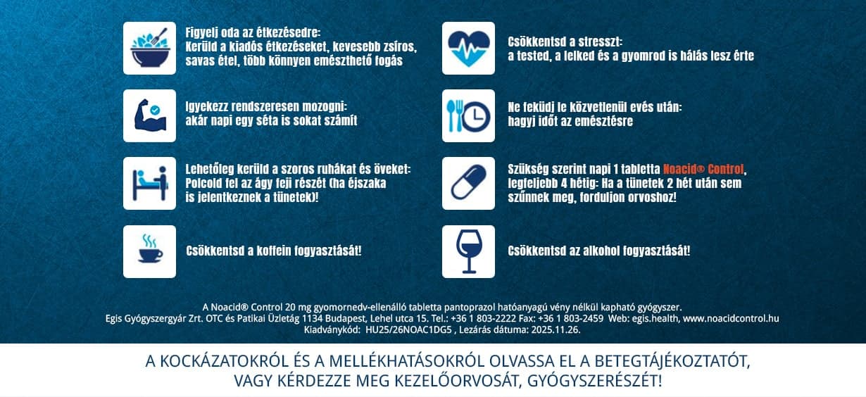 Napi 1 tabletta Noacid® Controllal a savtúltermelés forrásánál kezelheted a gyomorégéses panaszokat.