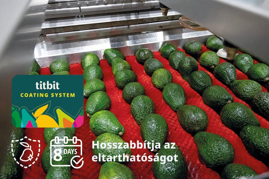 Az érlelési folyamat előtt az avokádót és a mangót saját fejlesztésű, ehető védőrétegünkkel vonjuk be. Ez a réteg segít megtartani a nedvességet a gyümölcsben, lassítja a kiszáradást és a természetes öregedési folyamatot. Így az avokádó és a mangó tovább marad friss, miközben megőrzi ízét és állagát.