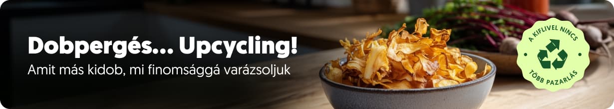 Most pedig még tovább megyünk – összefogtunk a TransFoodMission szakértőivel, és Európában elsőként bevezetjük az upcyclingot. Ez azt jelenti, hogy olyan termékeket alakítunk át új, minőségi finomságokká, amelyeket máskülönben hulladéknak tekintenének. Ezek nemcsak finomak, hanem segítenek megóvni a bolygót is. A gazdákkal és beszállítókkal együttműködve biztosítjuk, hogy minden termék pozitív hatással legyen a környezetre. Az upcyclinggel új életet adunk a gyártásból fennmaradó vagy éppen nem tökéletes külsejű alapanyagoknak – és ebben te is részt vehetsz.