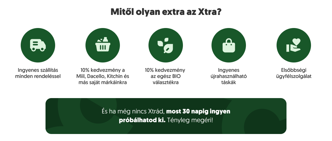 Olyan exkluzív termékeket hoztunk, amiket csak nálunk találsz meg, továbbá nyári klasszikusokat a kikapcsolódáshoz, BIO kincseket és prémium finomságokat azoknak, akik adnak az élvezetre. Mindezt olyan árakon, amik téged és a pénztárcádat is boldoggá tesznek. Tedd a nyarad egy nagy Xtra lakomává és vásárolj okosan.