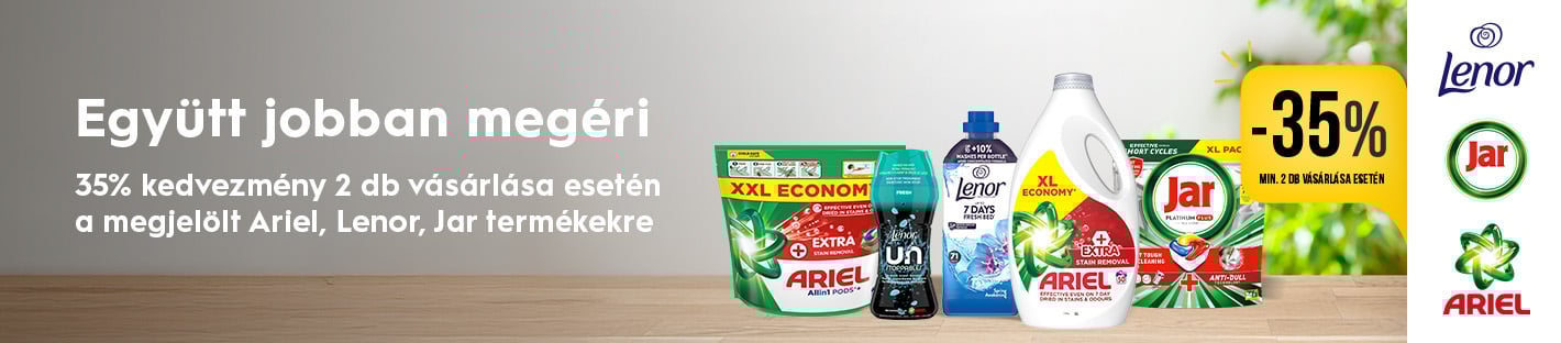 Többet-kevesebbértMix & Match AjánlatSzerezd meg kedvezményt: vásárolj csomagban!Nivea termékekVásárolj 2 vagy több terméket, és 30% kedvezményt kapsz 03.15.-ig.0 darab a kosárban1239FtMix & Match -30 %NIVEA Pearl & Beauty izzadásgátló golyós dezodor50 ml24780 Ft/l0 darab a kosárban1239FtMix & Match -30 %NIVEA Deo Spray Pearl & Beauty150 ml8260 Ft/l0 darab a kosárban1239FtMix & Match -30 %NIVEA Golyós dezodor Black & White Invisible Clear50 ml24780 Ft/l0 darab a kosárban1439FtMix & Match -30 %NIVEA MEN Deo spray Black & White Invisible Original200 ml7195 Ft/l0 darab a kosárban1239FtMix & Match -30 %NIVEA Fresh Natural dezodor150 ml8260 Ft/l0 darab a kosárban1439FtMix & Match -30 %NIVEA MEN Deo spray Black & White Invisible Fresh200 ml7195 Ft/l0 darab a kosárban1239FtMix & Match -30 %NIVEA Men Golyós dezodor Black & White Invisible Fresh50 ml24780 Ft/l0 darab a kosárban1239FtMix & Match -30 %NIVEA Deo Spray Protect & Care150 ml8260 Ft/l0 darab a kosárban1439FtMix & Match -30 %NIVEA Deo spray Black & White Invisible Clear200 ml7195 Ft/l0 darab a kosárban1239FtMix & Match -30 %NIVEA Men Cool Kick izzadásgátló golyós dezodor50 ml24780 Ft/l0 darab a kosárban1239FtMix & Match -30 %NIVEA Men Golyós dezodor Black & White Invisible Original50 ml24780 Ft/l0 darab a kosárban1239FtMix & Match -30 %NIVEA Deo Spray Derma Control Defend150 ml8260 Ft/l0 darab a kosárban1239FtMix & Match -30 %NIVEA Deo stift Pearl & Beauty50 ml24780 Ft/l0 darab a kosárban1239FtMix & Match -30 %NIVEA Men Deo Spray Deep150 ml8260 Ft/lÖsszes megjelenítése a(z) Nivea termékek kategóriábólMosás és mosogatásVásárolj 2 vagy több terméket, és 35% kedvezményt kapsz 03.15.-ig.0 darab a kosárban6899FtMix & Match -35 %Ariel Folyékony mosószer Color , 1.8 l40 mosás172.48 Ft/mosás0 darab a kosárban2099FtMix & Match -35 %Lenor Öblítő Orchid & Vanilla 675 ml32 mosás65.59 Ft/mosás0 darab a kosárban4899FtMix & Match -35 %Lenor Öblítő Spring Awakening , 2x1239 ml118 mosás41.52 Ft/mosás0 darab a kosárban3399FtMix & Match -35 %Lenor Parfümgyöngy Ruby Jasmine195 g17430.77 Ft/kg0 darab a kosárban8799FtMix & Match -35 %Jar Platinum Plus All in One Mosogatókapszula Lemon, 40 db40 db219.98 Ft/db0 darab a kosárban2099FtMix & Match -35 %Lenor Öblítő Sensitive 798 ml38 mosás55.24 Ft/mosás0 darab a kosárban3399FtMix & Match -35 %Lenor Parfümgyöngy Cotton Fresh 195 g195 g17430.77 Ft/kg0 darab a kosárban9399FtMix & Match -35 %Ariel Folyékony mosószer Color , 2.7 l60 mosás156.65 Ft/mosás0 darab a kosárban9399FtMix & Match -35 %Ariel Folyékony mosószer Extra Clean , 2.25 l50 mosás187.98 Ft/mosás0 darab a kosárban11 249FtMix & Match -35 %Jar Original All in One Mosogatókapszula Lemon, 71 db71 db158.44 Ft/db0 darab a kosárban13 999FtMix & Match -35 %Ariel PODS+ Mosókapszula Extra Clean 60 db60 db233.32 Ft/dbÚjdonság0 darab a kosárban11 249FtMix & Match -35 %Jar Platinum All in One Mosogatókapszula Lemon, 60 db60 db187.48 Ft/dbÚjdonság0 darab a kosárban2899FtMix & Match -35 %Lenor Öblítő Ocean Breeze 47 mosáshoz, 987 ml47 mosás61.68 Ft/mosás0 darab a kosárban8799FtMix & Match -35 %Jar Our 30 Minute Miracle Platinum Plus Mosogatókapszula Lemon, 31 db31 db283.84 Ft/dbÖsszes megjelenítése a(z) Mosás és mosogatás kategóriából