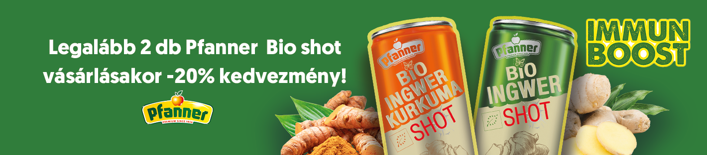 Vásárolj egyidejűleg a megjelölt Pfanner BIO shot termékekből 4 db-ot a 20% kedvezményért 2026.03.02. és 2026.03.08. között, illetve a készlet erejéig!