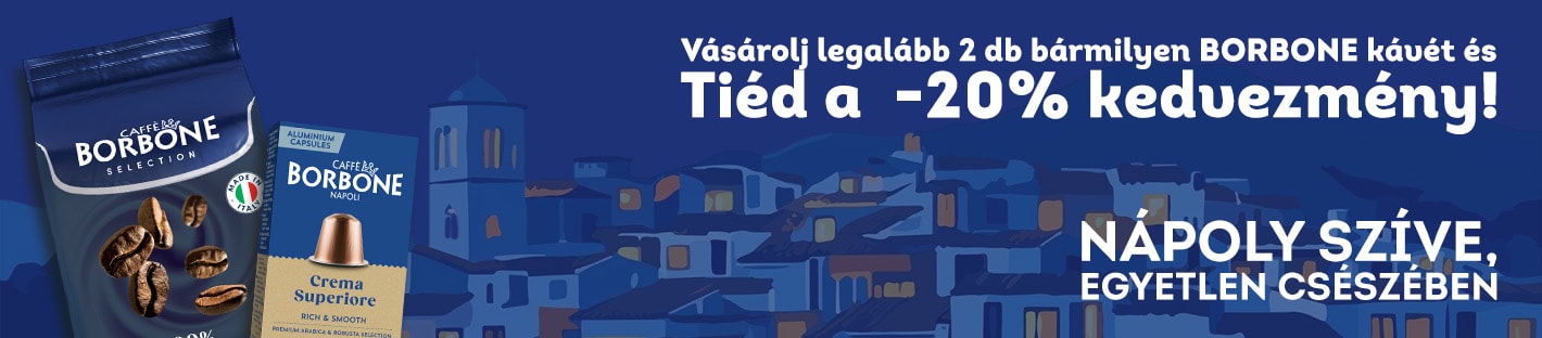 Vásárolj egyidejűleg a megjelölt Caffe Borbone termékekből 2 db-ot a 20% kedvezményért 2026.03.02. és 2026.03.08. között, illetve a készlet erejéig!