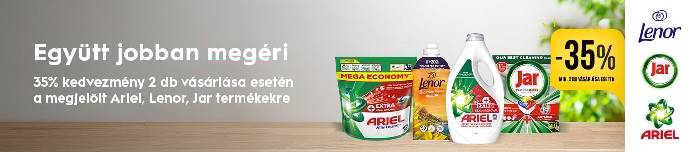 Többet-kevesebbértMix & Match AjánlatSzerezd meg kedvezményt: vásárolj csomagban!2 db után 10%2 db után 10%0 darab a kosárban649FtMix & Match -10 %Csíki Chips Chili verde60 g10816.67 Ft/kg0 darab a kosárban649FtMix & Match -10 %Csíki Chips Gyulai sausage flavoured60 g10816.67 Ft/kg0 darab a kosárban589FtMix & Match -10 %Csíki Chips Sós60 g9816.67 Ft/kg0 darab a kosárban589FtMix & Match -10 %Csíki Chips Sajtos60 g9816.67 Ft/kg0 darab a kosárban589FtMix & Match -10 %Csíki Chips Paprika60 g9816.67 Ft/kgÖsszes megjelenítése a(z) 2 db után 10% kategóriábólMosás és mosogatásVásárolj 2 vagy több terméket, és 35% kedvezményt kapsz 04.20.-ig.Elfogyott. Várható sze.Hasonló3399FtMix & Match -35 %Lenor Öblítő Sensitive , 1491 ml71 mosás47.87 Ft/mosás0 darab a kosárban3399FtMix & Match -35 %Lenor Öblítő Spring Awakening , 1491 ml71 mosás47.87 Ft/mosás0 darab a kosárban7599FtMix & Match -35 %Ariel Folyékony mosószer Mountain Spring , 2.7 l60 mosás126.65 Ft/mosás0 darab a kosárban3199FtMix & Match -35 %Lenor Parfümgyöngy Gold Orchid 195 g195 g16405.13 Ft/kg0 darab a kosárban4999FtMix & Match -35 %Lenor Öblítő Gold Orchid 126 mosáshoz, 2.65 l126 mosás39.67 Ft/mosás0 darab a kosárban9899FtMix & Match -35 %Ariel All-in-1 PODS Mosókapszula Color 50 db50 db197.98 Ft/db0 darab a kosárban9399FtMix & Match -35 %Ariel Folyékony mosószer Extra Clean , 2.25 l50 mosás187.98 Ft/mosás0 darab a kosárban7599FtMix & Match -35 %Ariel Folyékony mosószer Sensitive , 2.7 l60 mosás126.65 Ft/mosás0 darab a kosárban3399FtMix & Match -35 %Lenor Öblítő Orchid & Vanilla , 1239 ml59 mosás57.61 Ft/mosás0 darab a kosárban4999FtMix & Match -35 %Lenor Öblítő Sensitive 126 mosáshoz, 2.65 l126 mosás39.67 Ft/mosás0 darab a kosárban4999FtMix & Match -35 %Lenor Öblítő Spring Awakening 126 mosáshoz, 2.65 l126 mosás39.67 Ft/mosás0 darab a kosárban9899FtMix & Match -35 %Ariel All-in-1 PODS Mosókapszula Mountain Spring 50 db50 db197.98 Ft/db0 darab a kosárban8899FtMix & Match -35 %Ariel Folyékony mosószer Color 3.15 l70 mosás127.13 Ft/mosás0 darab a kosárban9399FtMix & Match -35 %Ariel Folyékony mosószer Fresh Air , 2.25 l50 mosás187.98 Ft/mosásÖsszes megjelenítése a(z) Mosás és mosogatás kategóriából